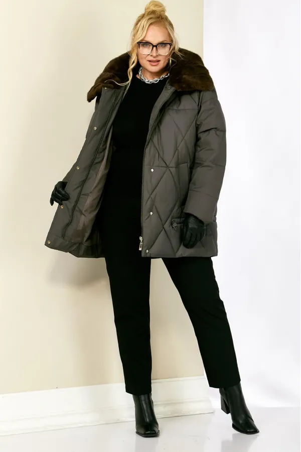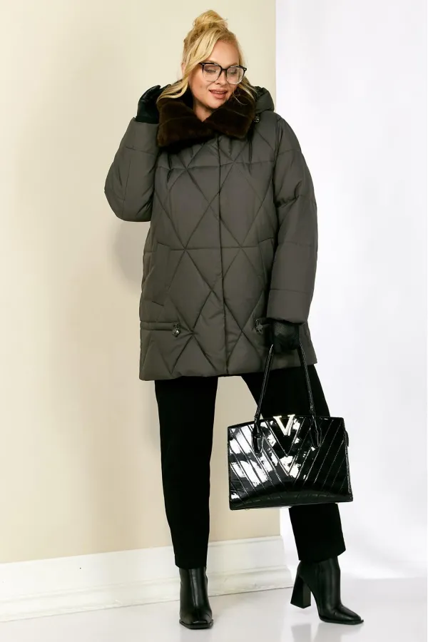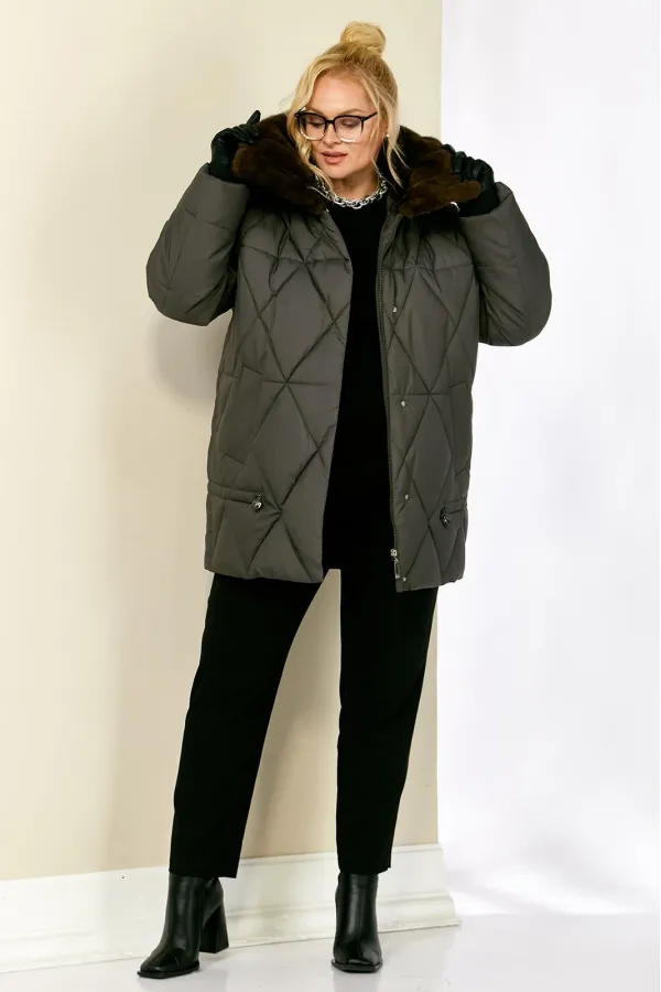Зимняя, модная женская куртка, которая идеально подойдет для холодных дней, обеспечивая комфорт и защиту от ветра. Изделие прямого, классического стиля, выполнена из курточной матовой ткани высокого качества, непромокаемая. Утеплитель «Холлофайбер» хорошо держит форму и не сбивается. По переду центральная застежка на молнии и металлические кнопки. Карманы прорезного типа на магнитах. Нижняя часть изделия регулируется декоративным шнуром. Рукав втачной. Для защиты от ветра и мороза, рукава по низу дополнены внутренними трикотажными манжетами. Воротник отделан мехом, максимально по внешнему виду приближенный к натуральному «Норка». Капюшон съемный, регулируется декоративным шнуром. Спинка цельная.
