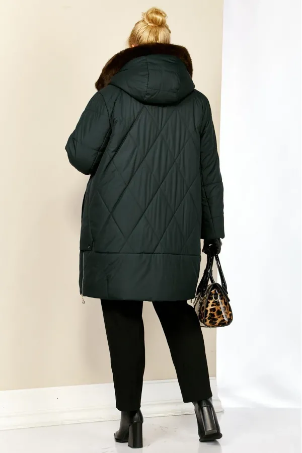 Модная, зимняя удлиненная куртка с утепляющим наполнителем «Верблюжья шерсть», который хорошо держит форму и не сбивается. На подкладке, подкладка прошита, стеганная. Изделие прямого, классического стиля, выполнено из курточной матовой ткани высокого качества, непромокаемое. По переду центральная застежка на молнии с планкой на металлические кнопки, а также функциональными, глубокими, накладными карманами на магнитах и декоративным элементом. Рукав втачной. Для защиты от ветра и мороза, рукава по низу дополнены внутренними трикотажными манжетами. Капюшон не съемный, регулируется декоративным шнуром. Внутренняя часть капюшона отделана мехом, максимально по внешнему виду приближенного к натуральному «Норка». Спинка цельная. Низ изделия с легкими защипами. Боковые швы декорированы молнией (действующая).