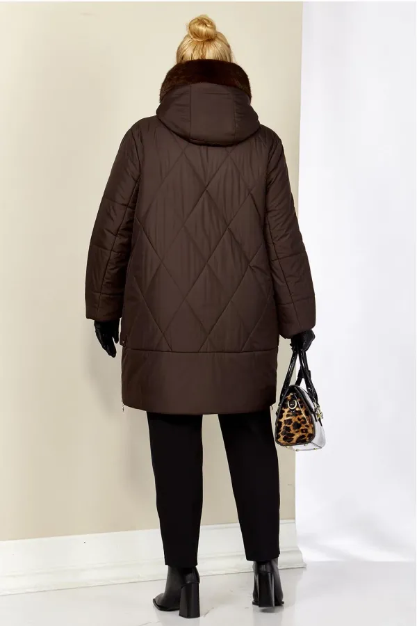 Модная, зимняя удлиненная куртка с утепляющим наполнителем «Верблюжья шерсть», который хорошо держит форму и не сбивается. На подкладке, подкладка прошита, стеганная. Изделие прямого, классического стиля, выполнено из курточной матовой ткани высокого качества, непромокаемое. По переду центральная застежка на молнии с планкой на металлические кнопки, а также функциональными, глубокими, накладными карманами на магнитах и декоративным элементом. Рукав втачной. Для защиты от ветра и мороза, рукава по низу дополнены внутренними трикотажными манжетами. Капюшон не съемный, регулируется декоративным шнуром. Внутренняя часть капюшона отделана мехом, максимально по внешнему виду приближенного к натуральному «Норка». Спинка цельная. Низ изделия с легкими защипами. Боковые швы декорированы молнией (действующая).