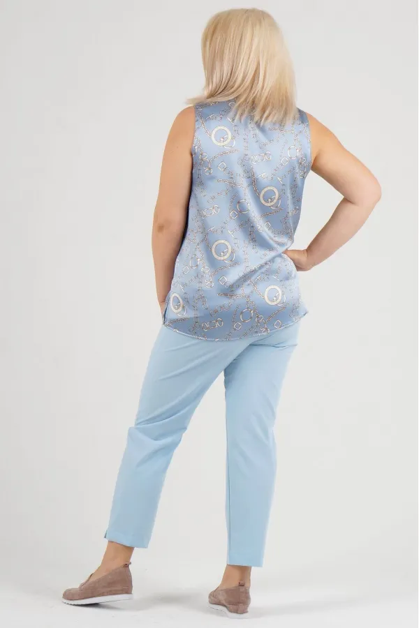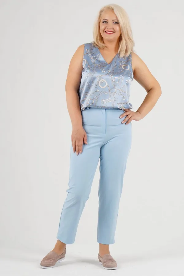 Летние женские брюки от компании Malina. Модель зауженного силуэта. Выполнены из эластичной костюмной ткани. Пояс приточной со шлёвками. С имитацией карманов. С разрезами в низу. Застёжка молния и крючок. Без подклада. Прекрасный выбор на каждый день.
