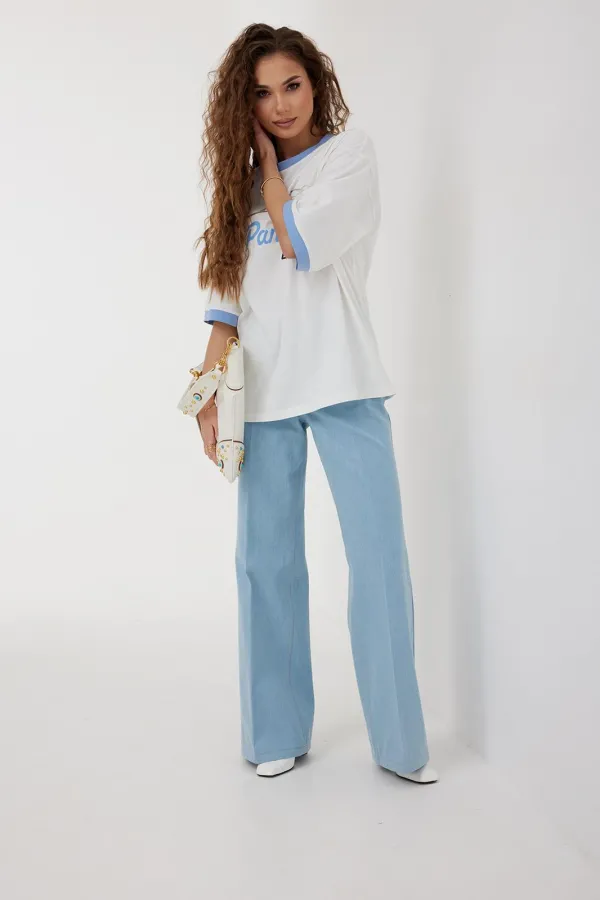 Джемпер прямого силуэта из трикотажного полотна. Горловина круглой формы с бейкой из отделочной ткани. Расширенная линия плеча. Рукав прямой, по низу отделка. Перед декорирован оригинальной печатью.