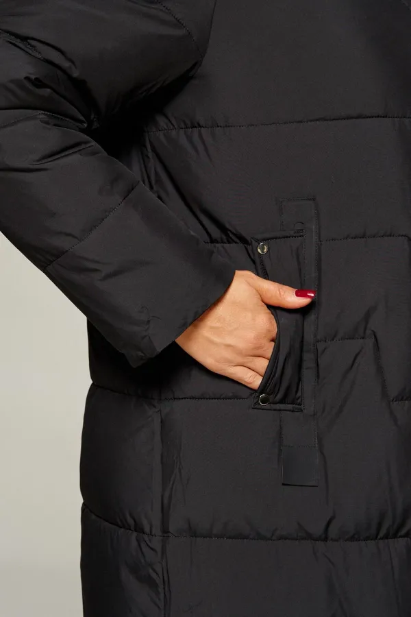 Пальто выполнено из прочной, влагостойкой и приятной на ощупь полиэстерной ткани; на синтетической подкладке. Утеплитель холлофайбер 200 г/м. кв. предназначен для использования изделия при температурном режиме от -10 до -20 градусов.
