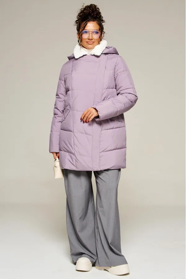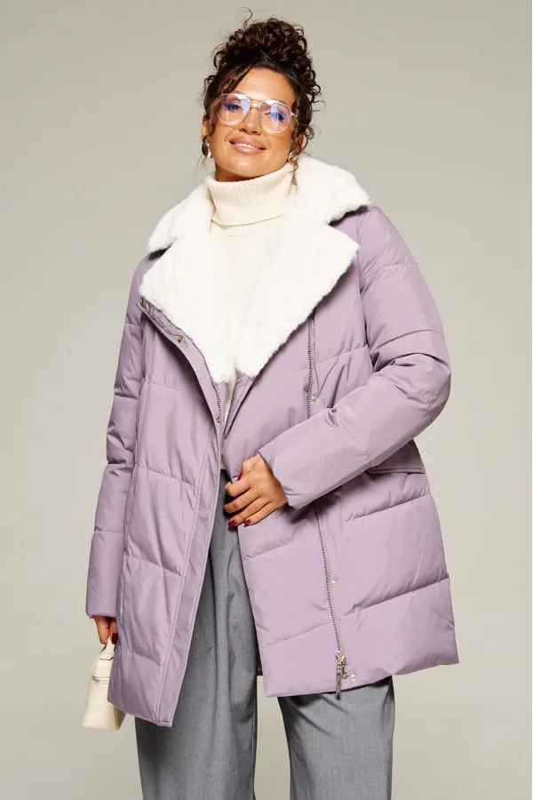 Воротник пиджачного типа с возможностью застегивания до верха. Внутренняя часть воротника и лацканы обработаны искусственным мехом.
