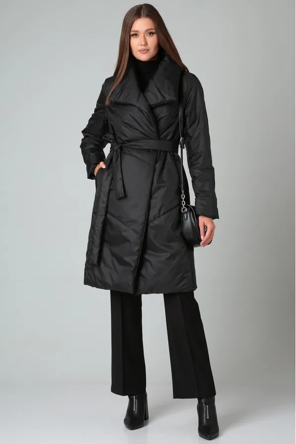 Стильное стеганное пальто с воротником Апаш из плащевой ткани. В боковых швах смещенных на полочку функциональные карманы с листочками. Застежка на кнопк. Рукав втачной двухшоный. Материал верха: курточная балонь. Уникальный бельгийский утеплитель Isosoft 120г на 1 м.кв. Демисизон. Температурный режим 0 - -10.