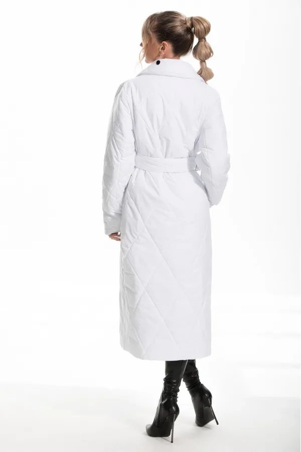 Пальто утепленное с центральной двубортной застежкой на пришивные кнопки, отложным воротником и лацканами. В боковых швах- карманы. Спинка цельная. Рукав втачной, двухшовный. Пальто со съемным поясом и декоративной сумочкой.