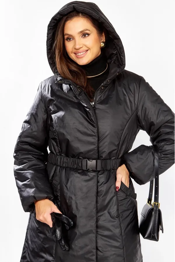 Пальто оснащено капюшоном, застёжкой-молнией и потайными кнопками, что делает его функциональным и защищённым от ветра. Пояс акцентирует талию, придавая фигуре изящество. Современная классика для динамичных женщин, ценящих стиль и практичность.