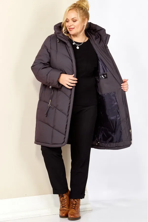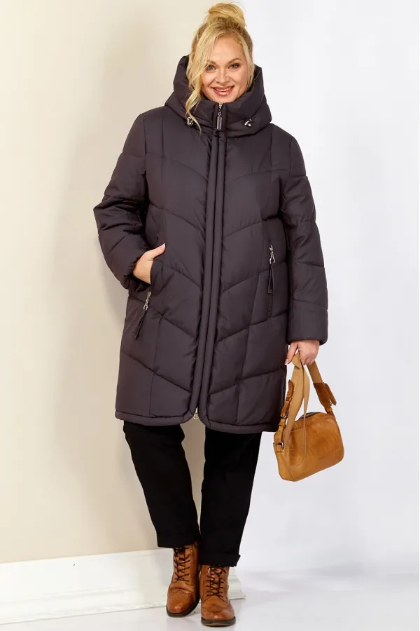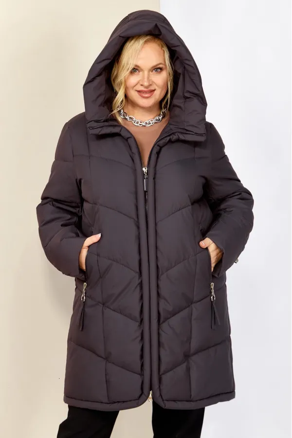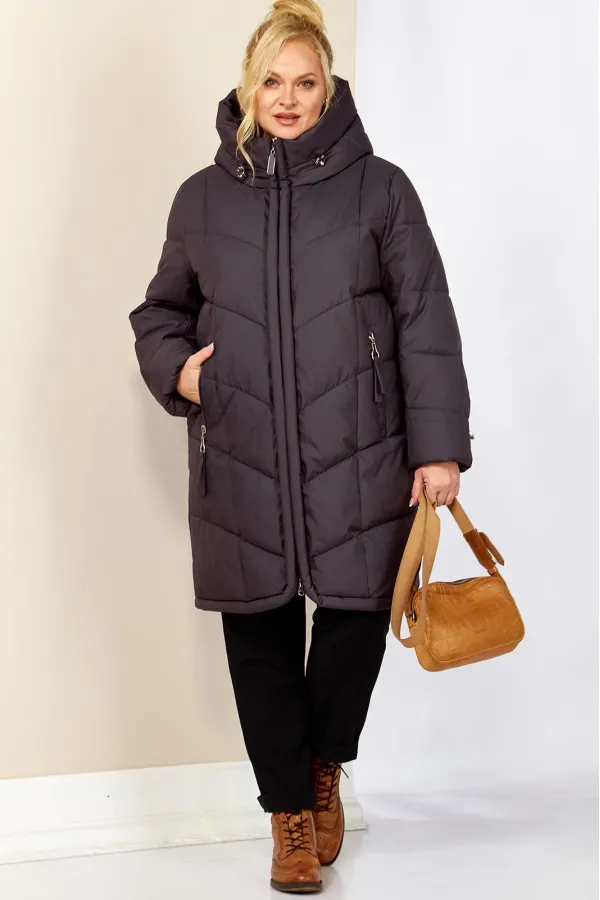 Стильное и модное женское полупальто, которое идеально подойдет для холодных дней, обеспечивая комфорт и защиту от ветра. Изделие прямого, классического стиля. Модель выполнена из курточной матовой ткани высокого качества, непромокаемая. Утеплитель «Холлофайбер» хорошо держит форму и не сбивается. По переду центральная застежка на молнии. Карманы прорезного типа с декоративным элементом. Рукав втачной. Капюшон не съемный, регулируется декоративным шнуром. По переду и спинке рельефные швы. Низ бортов с закругленным краем.