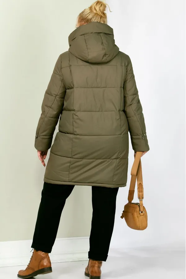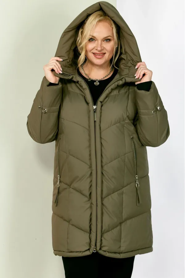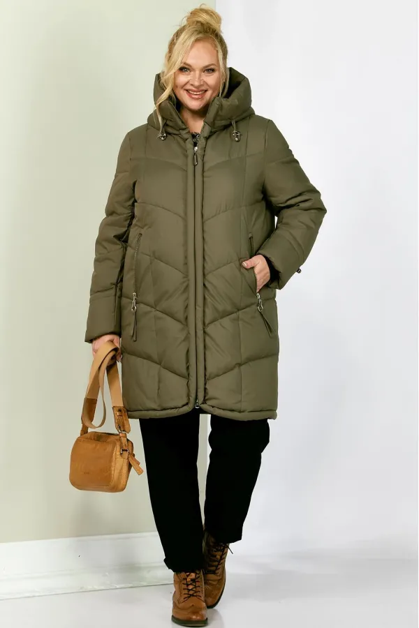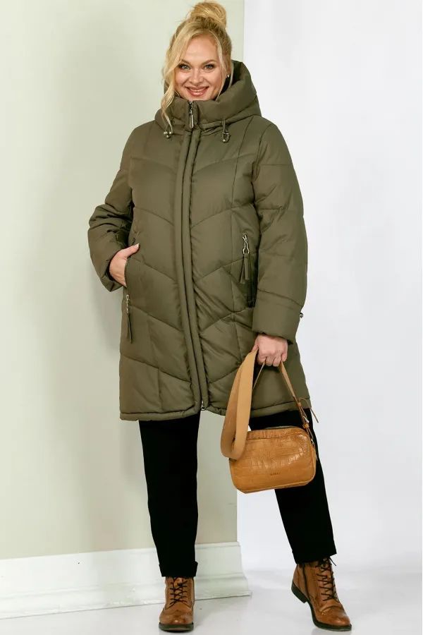 Стильное и модное женское полупальто, которое идеально подойдет для холодных дней, обеспечивая комфорт и защиту от ветра. Изделие прямого, классического стиля. Модель выполнена из курточной матовой ткани высокого качества, непромокаемая. Утеплитель «Холлофайбер» хорошо держит форму и не сбивается. По переду центральная застежка на молнии. Карманы прорезного типа с декоративным элементом. Рукав втачной. Капюшон не съемный, регулируется декоративным шнуром. По переду и спинке рельефные швы. Низ бортов с закругленным краем.