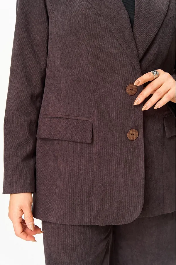 Представляем вам стильный блейзер от Anastasia Mak. Этот блейзер из вельвета станет идеальным дополнением к вашему гардеробу. Классический прямой крой идеально подчеркнет вашу фигуру и современный стиль, оставаясь комфортным и теплым. Блейзер легко комбинируется, позволяя составлять как повседневные образы, так и деловые, корпоративные и даже вечерние. Вельветовый материал придает образу дополнительную фактуру, хлопок в составе материала гарантирует комфорт даже при длительной носке. Блейзер на подкладке. Полочка блейзера с центральной застежкой на две петли пуговицы. Полочка с вертикальными рельефами и прорезными карманами с клапанами. Горловина V-образной формы с отложными лацканами и воротником пиджачного типа. Спинка со средним швом и вертикальными рельефами. Рукав втачной, двухшовный. Блейзер на плечиках.