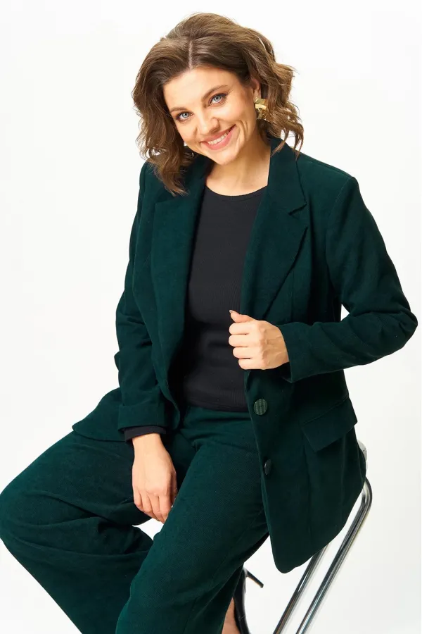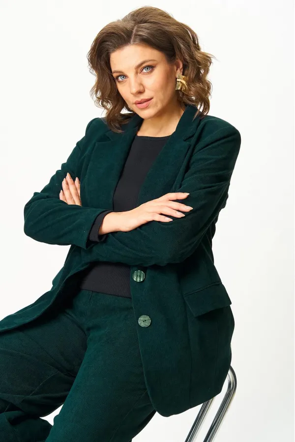 Представляем вам стильный блейзер от Anastasia Mak. Этот блейзер из вельвета станет идеальным дополнением к вашему гардеробу. Классический прямой крой идеально подчеркнет вашу фигуру и современный стиль, оставаясь комфортным и теплым. Блейзер легко комбинируется, позволяя составлять как повседневные образы, так и деловые, корпоративные и даже вечерние. Вельветовый материал придает образу дополнительную фактуру, хлопок в составе материала гарантирует комфорт даже при длительной носке. Блейзер на подкладке. Полочка блейзера с центральной застежкой на две петли пуговицы. Полочка с вертикальными рельефами и прорезными карманами с клапанами. Горловина V-образной формы с отложными лацканами и воротником пиджачного типа. Спинка со средним швом и вертикальными рельефами. Рукав втачной, двухшовный. Блейзер на плечиках.