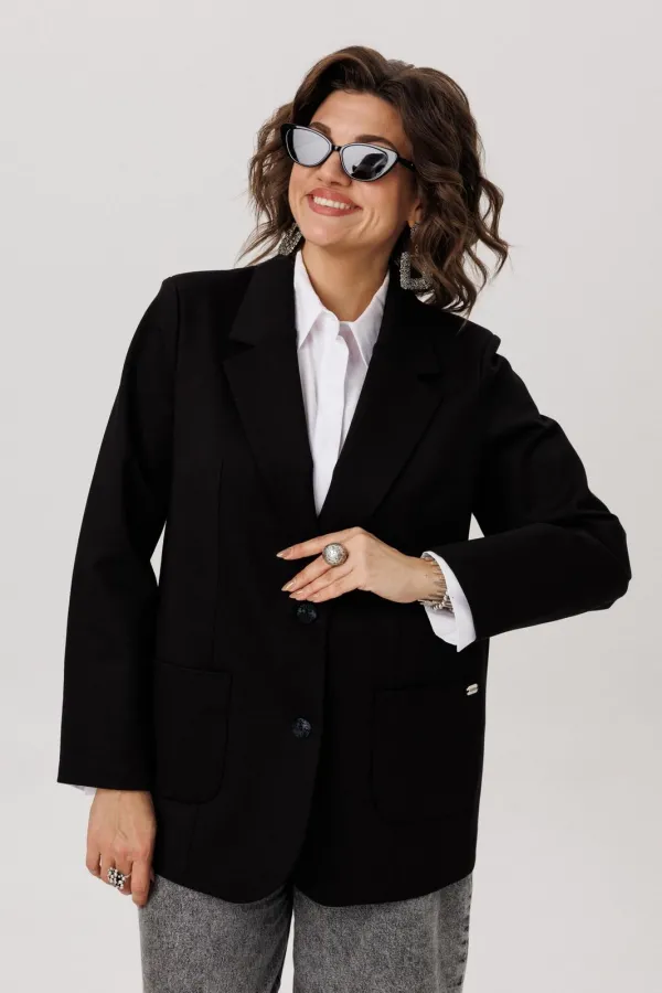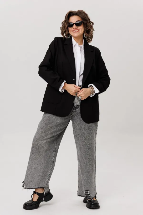 Длинный втачной рукав и два накладных кармана делают модель не только стильной, но и практичной. Жакет легко впишется в повседневный гардероб — он будет одинаково хорошо смотреться с офисными брюками, джинсами или свободными брюками, добавляя образу лёгкую небрежность.