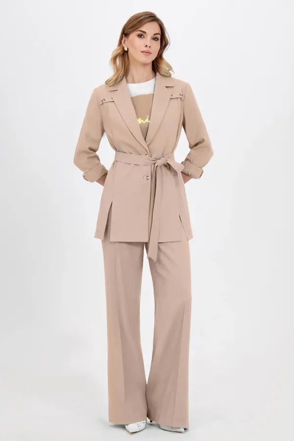 Элегантность встречается с повседневностью! Этот жакет прямого кроя сочетает в себе классические детали с современной интерпретацией, такие как воротник с лацканами, застёжка на двух пуговицах и кокетки, дополненные отделочными пуговицами по переду. Интересное решение рельефов и среднего шва спинки разбивает классический образ и придаёт ему повседневный, спортивный оттенок, а разрезы в движении добавляют дополнительную динамику. Рукава втачные двухшовные, со шлицами с отделочными пуговицами. Частично на подкладке. Жакет можно носить с поясом-завязкой для акцента на талии или оставить свободным для раслабленного,но стильного образа.