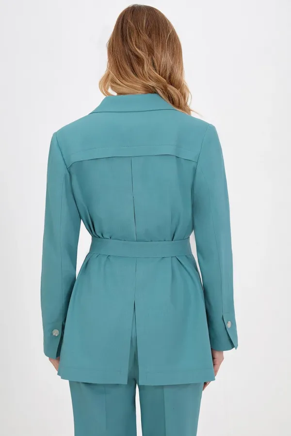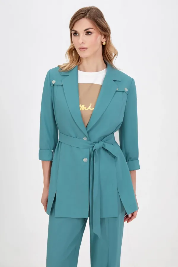 Элегантность встречается с повседневностью! Этот жакет прямого кроя сочетает в себе классические детали с современной интерпретацией, такие как воротник с лацканами, застёжка на двух пуговицах и кокетки, дополненные отделочными пуговицами по переду. Интересное решение рельефов и среднего шва спинки разбивает классический образ и придаёт ему повседневный, спортивный оттенок, а разрезы в движении добавляют дополнительную динамику. Рукава втачные двухшовные, со шлицами с отделочными пуговицами. Частично на подкладке. Жакет можно носить с поясом-завязкой для акцента на талии или оставить свободным для раслабленного,но стильного образа.