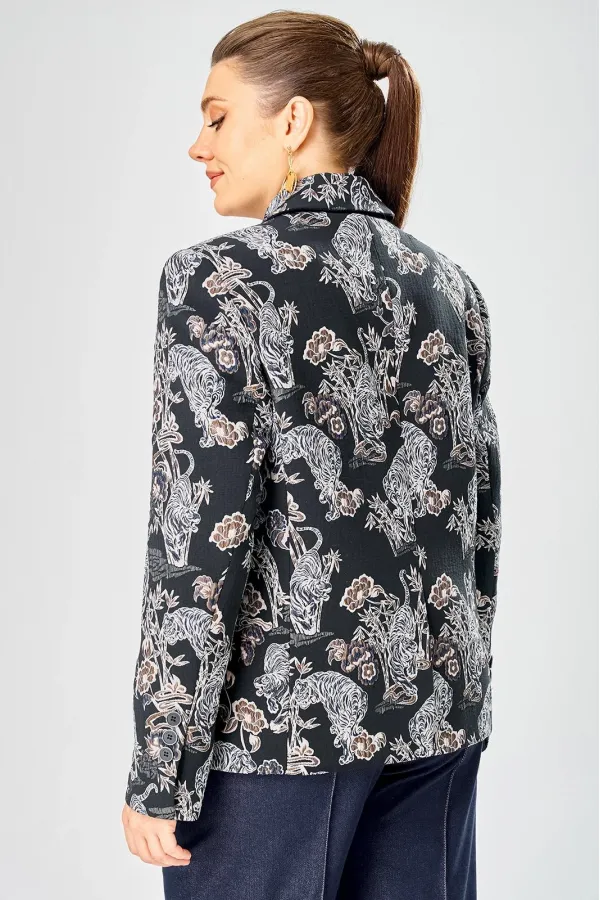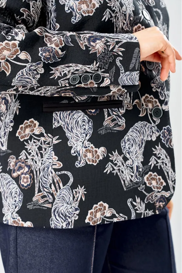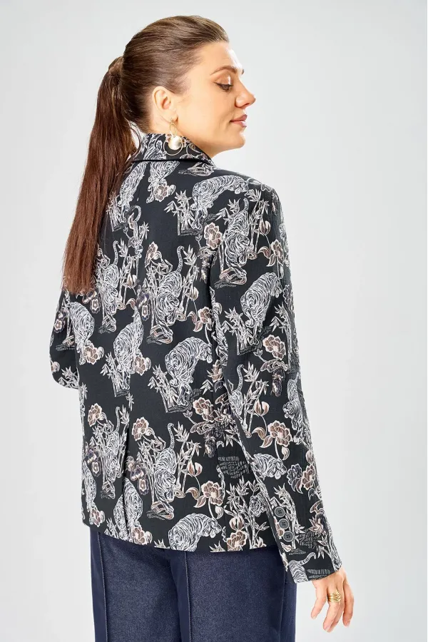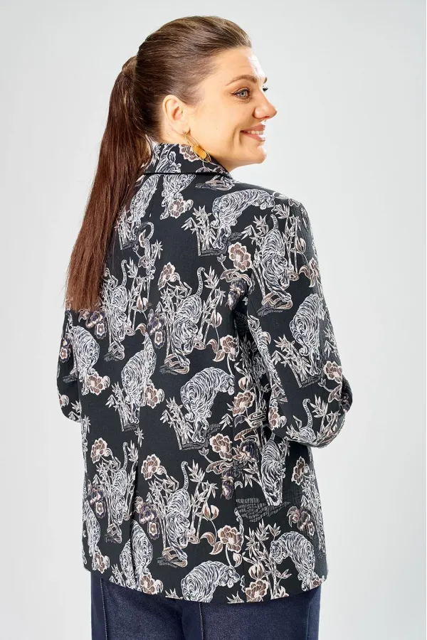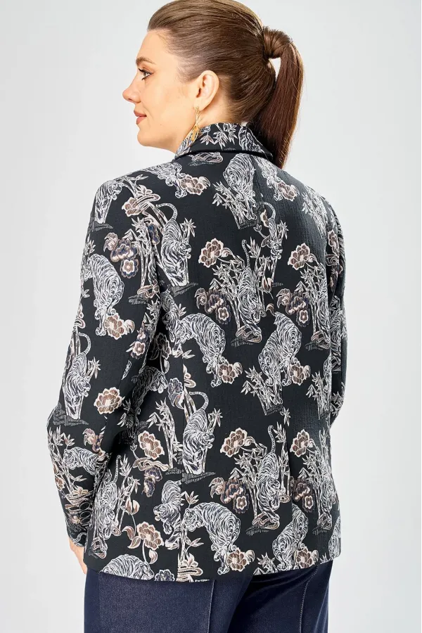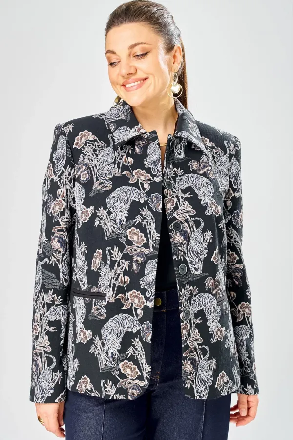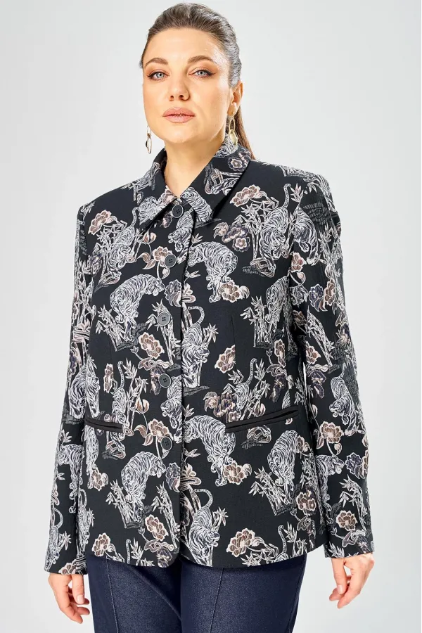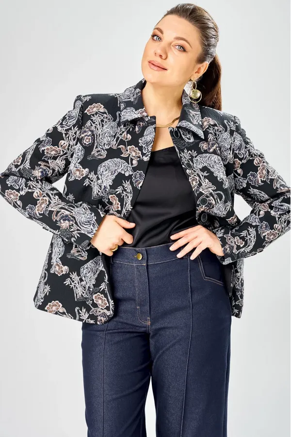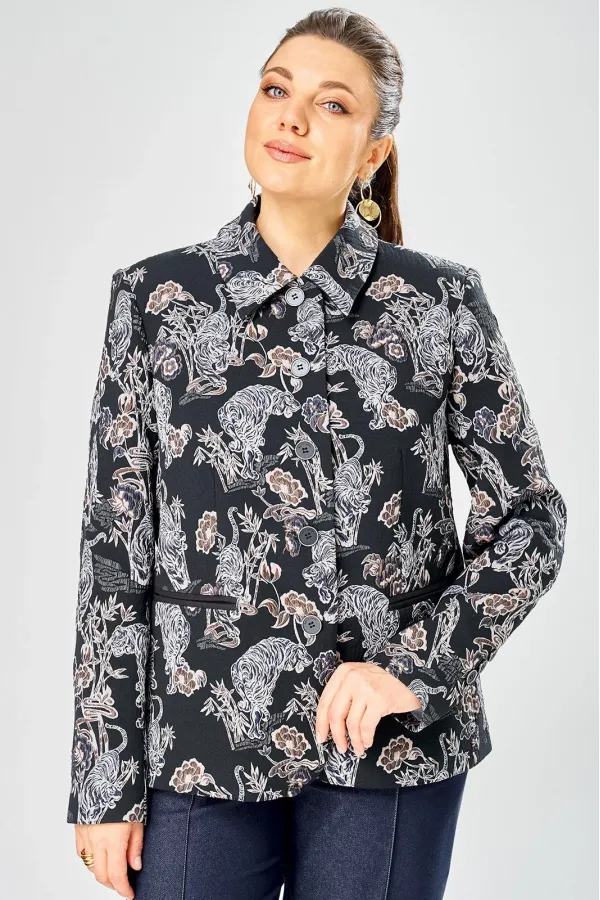 Стильный женский жакет из жаккардовой ткани с актуальным принтом.