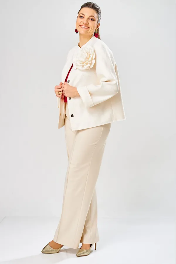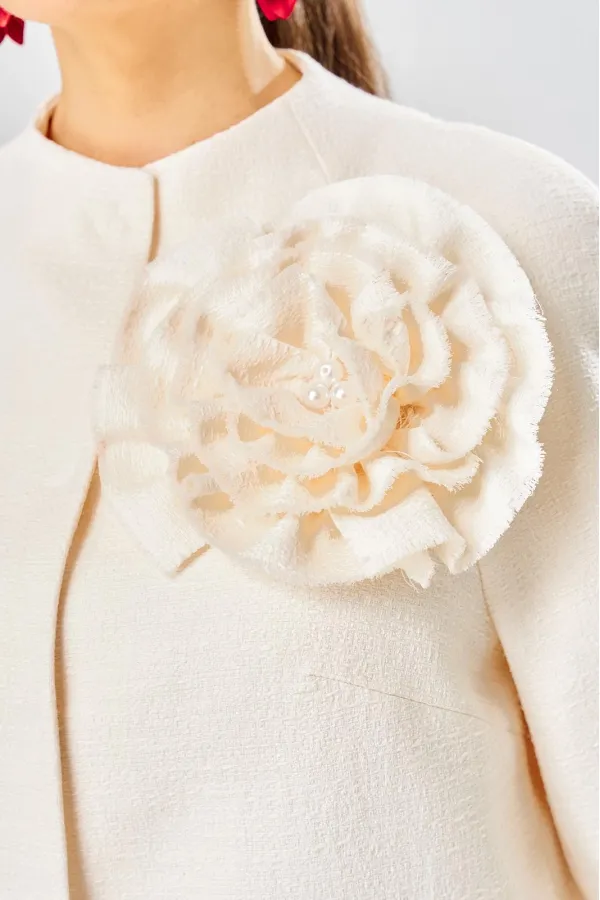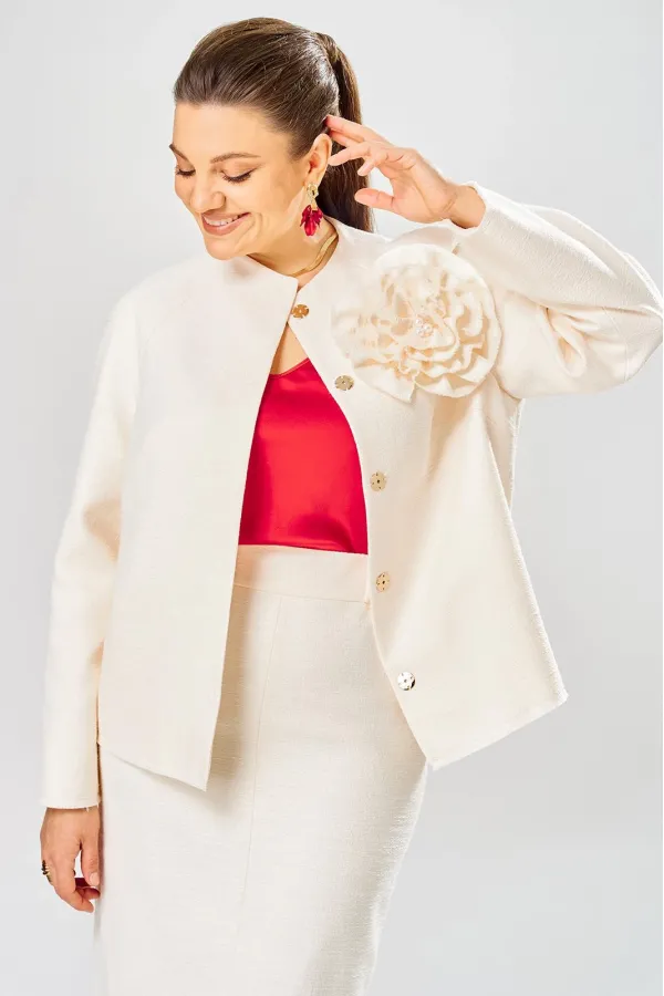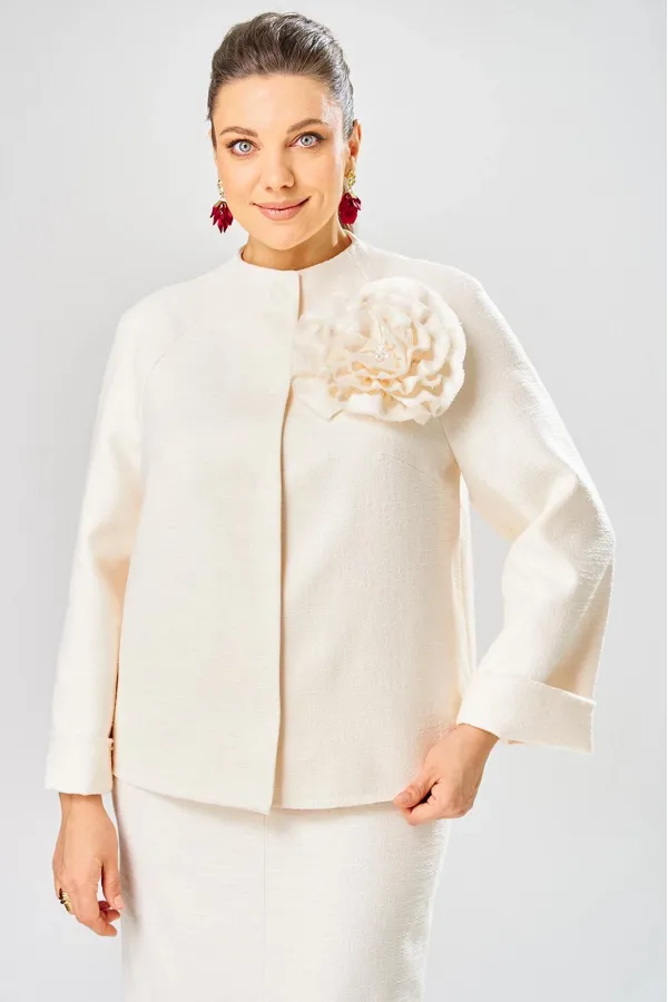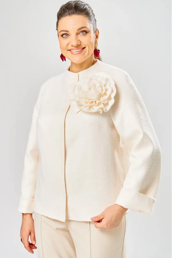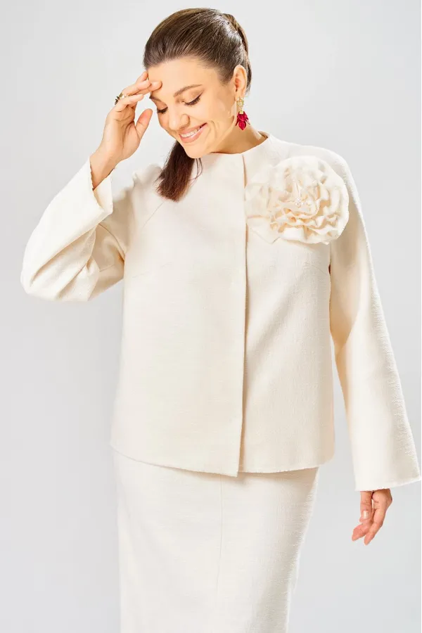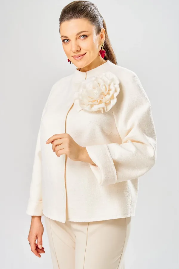 Жакет украшен декоративной розой из основной ткани.