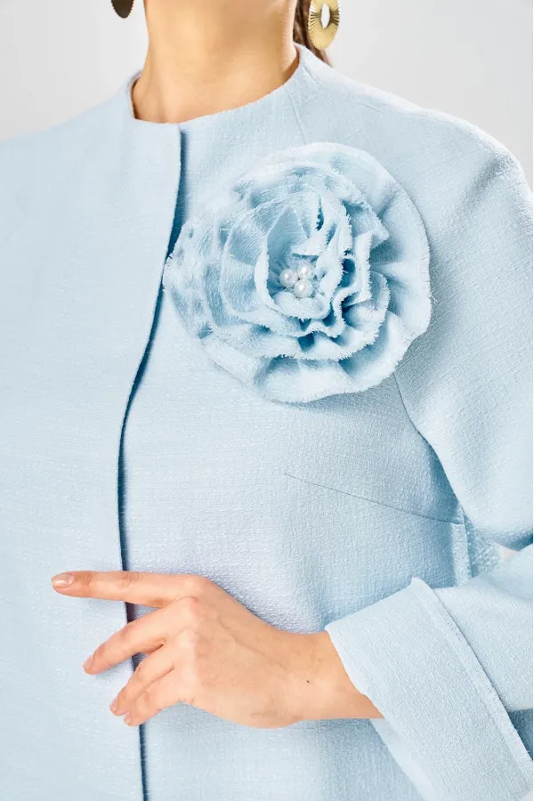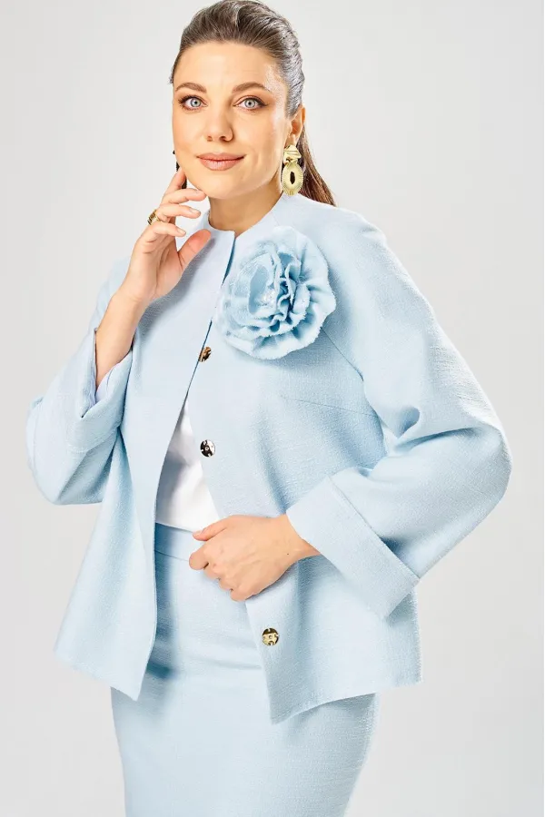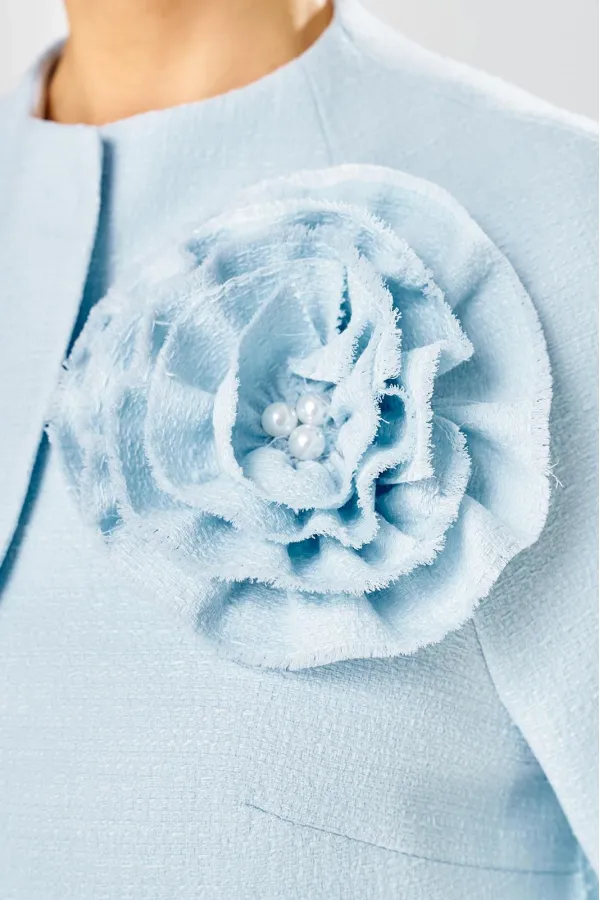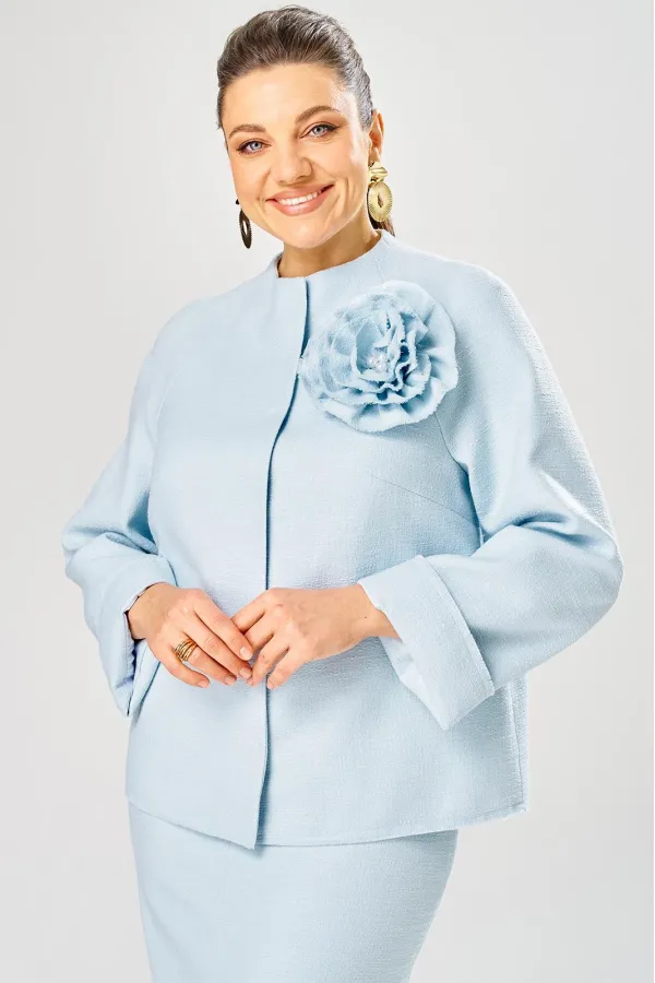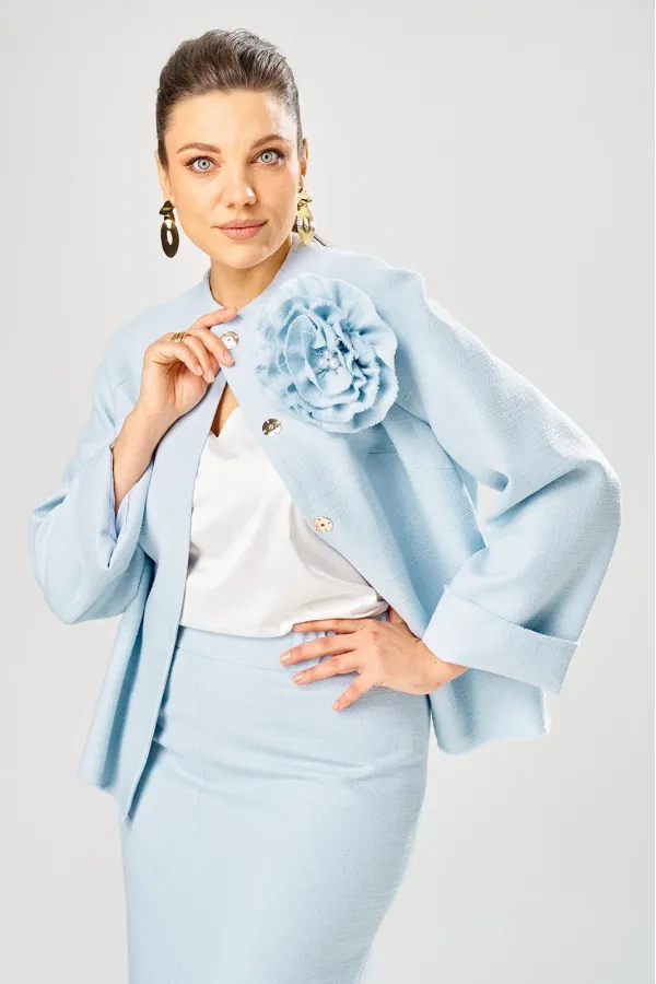 Жакет украшен декоративной розой из основной ткани.