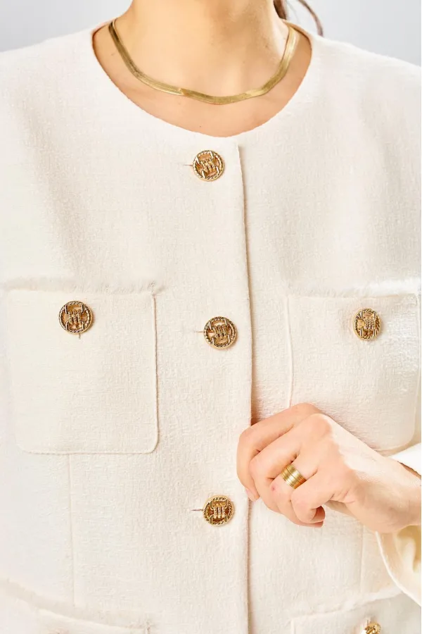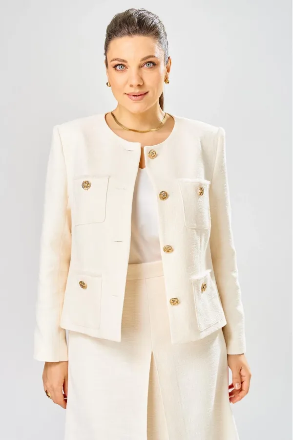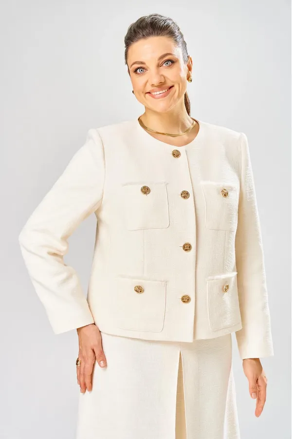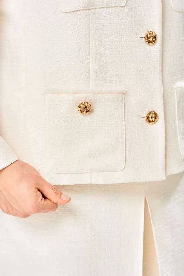 Элегантный женский жакет, выполнен из жаккардовой ткани, в стиле «Шанель».