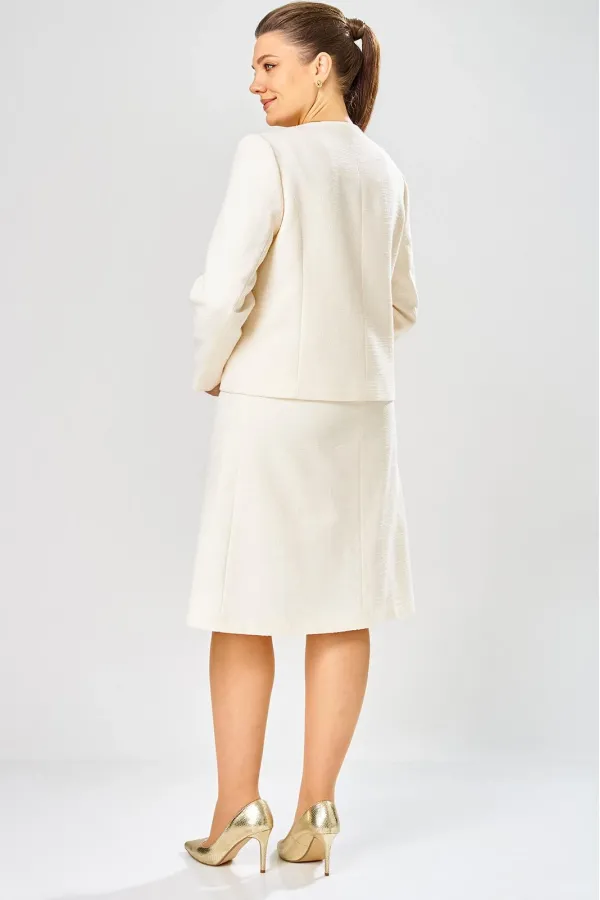 Застежка центральная на петли пуговицы, горловина круглая. Рукава втачные, длинные.