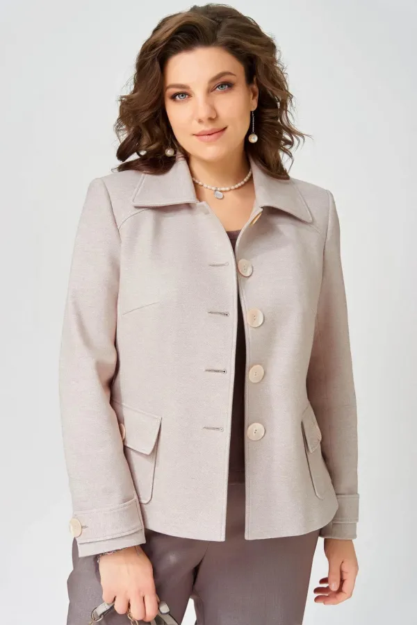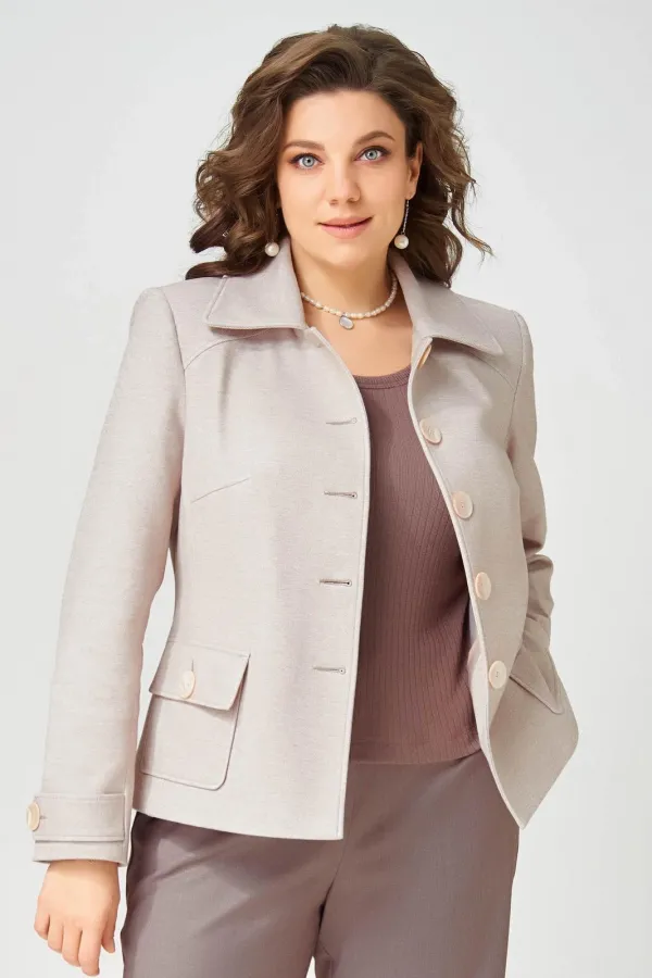 Женский стильный жакет Венциана выполнен из пальтово-костюмной ткани. Жакет на подкладке, полуприлегающего силуэта. Кокетки и накладные карманы с клапанами придают модели архитектурную чёткость. Двухшовные рукава с патам... Читать далее...