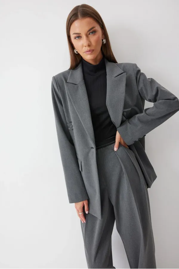 Жакет прямого силуэта из костюмной ткани. Воротник пиджачного типа с центральной застежкой на петлю и пуговицу. Рукав втачной двухшовный с декоративной шлицей и пуговицами. По переду и спинке талиевые вытачки. По переду ... Читать далее...