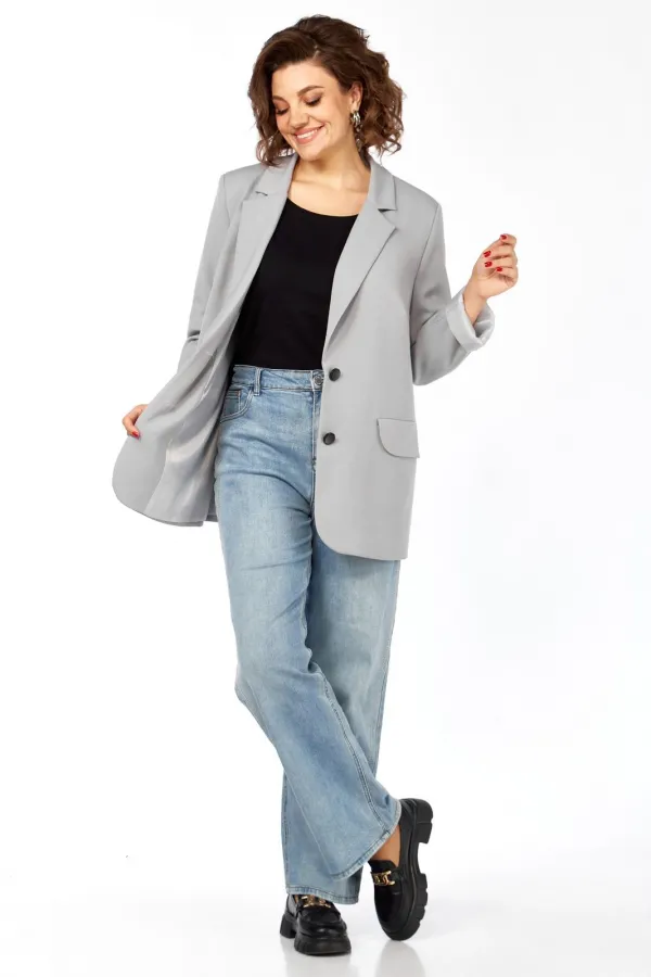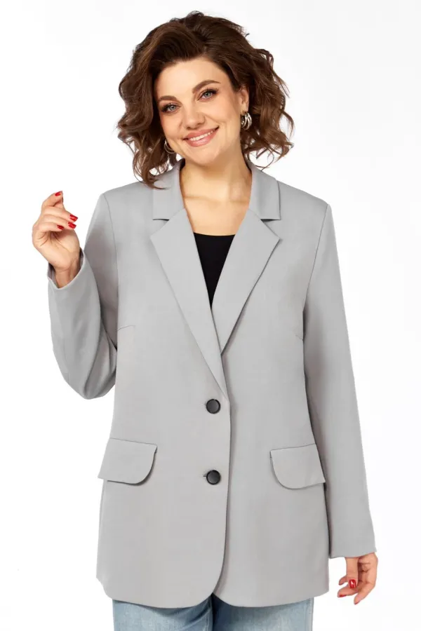 Жакет прямого силуэта, на подкладке с центральной застежкой на петли-пуговицы. По переду на уровне талии выполнены прорезные карманы с листочкой. Рукав втачной, двухшовный с цельнокроеной манжетой.
