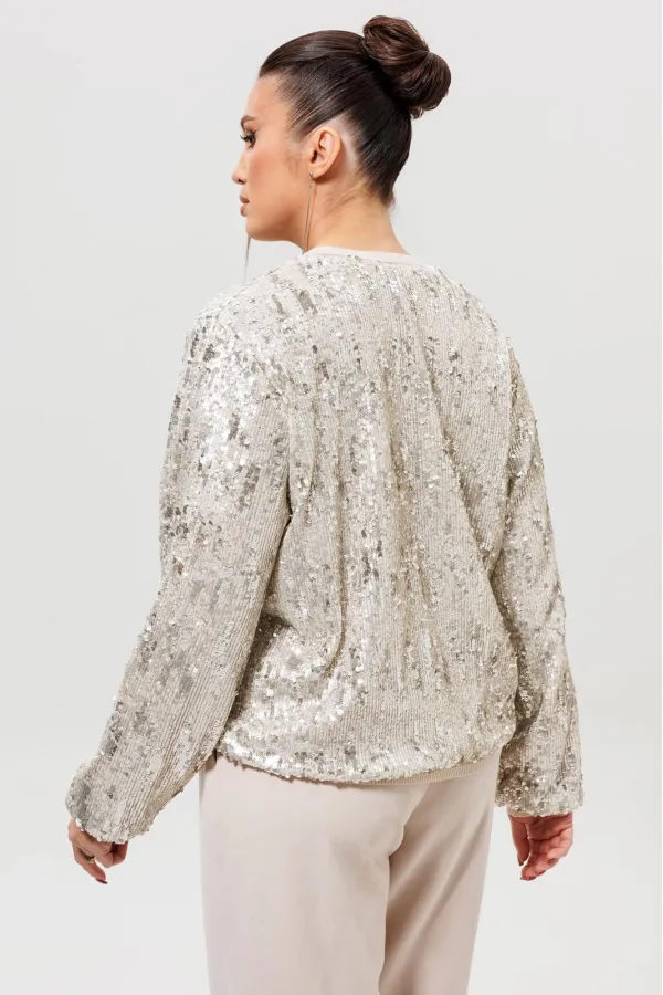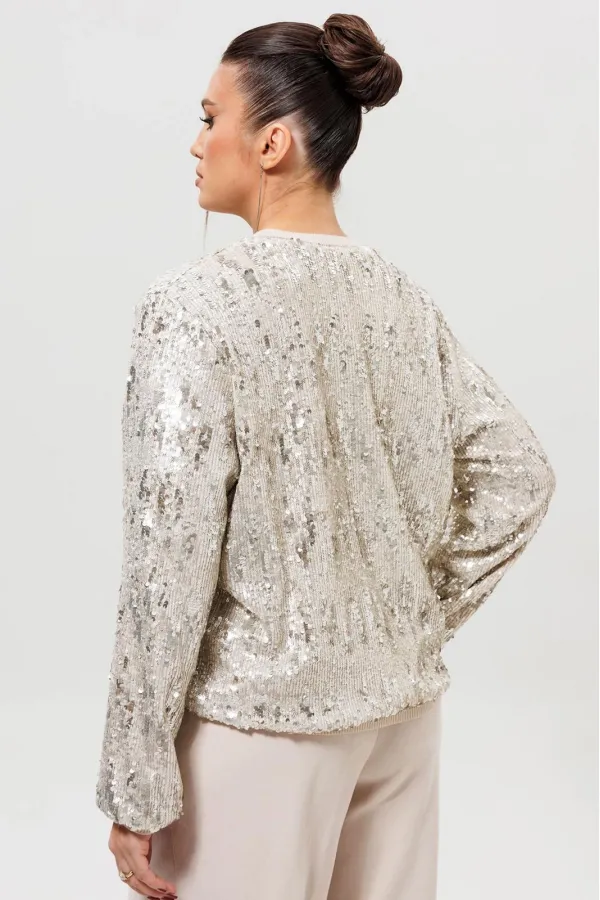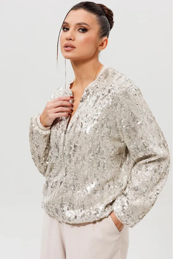 Жакет - бомбер с пайетками (Арт. 1279) создан для смелых и стильных образов. Куртка полностью покрыта мерцающими пайетками, которые создают неповторимый блестящий эффект при каждом движении. Жакет с пайетками отлично соч... Читать далее...