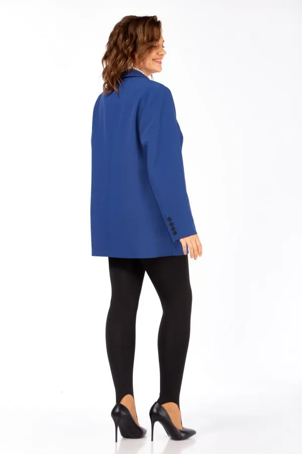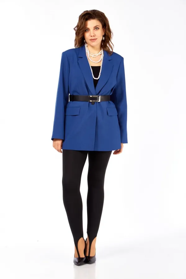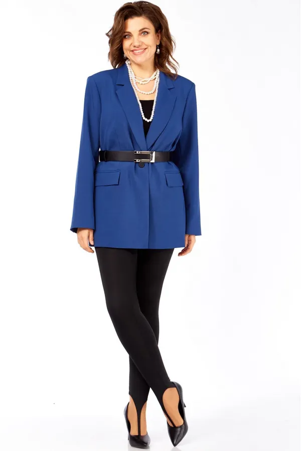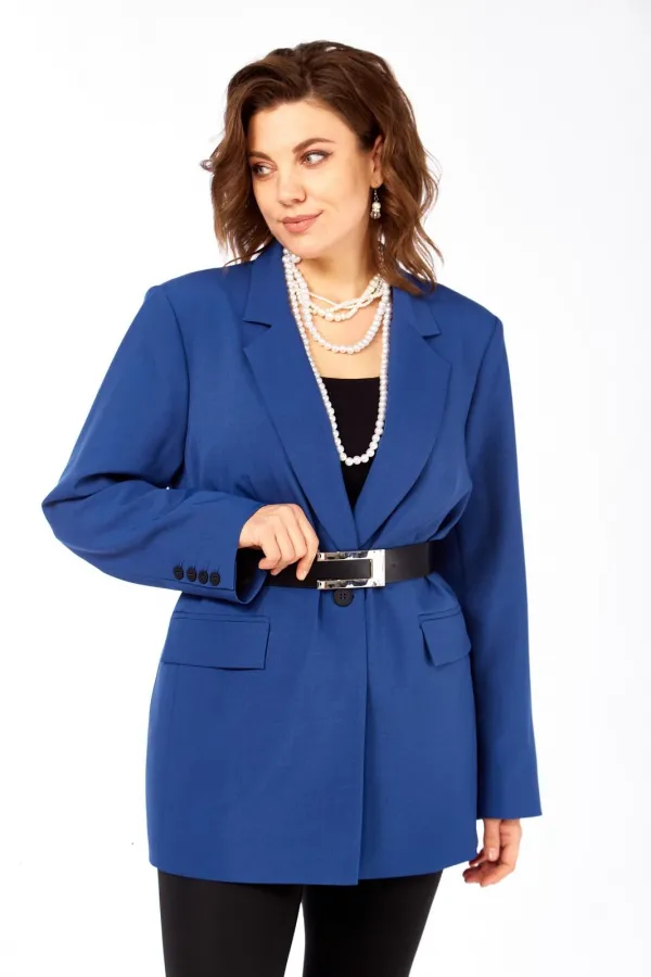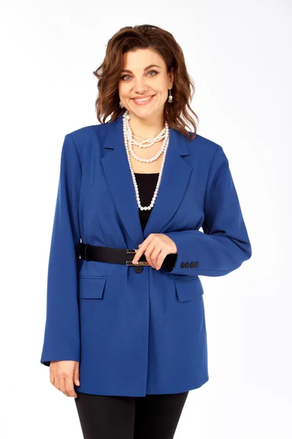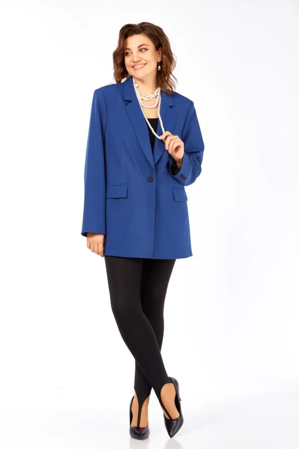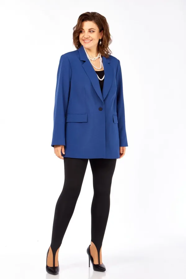 Стильный жакет прямого силуэта с пиджачным воротником, с застежкой на одну пуговицу. По переду карманы клапанами. Рукав длинный двухшовный со шлицей на четыре пуговицы