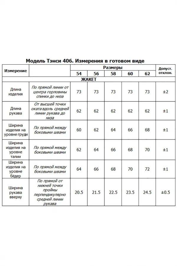 Длина жакета от центра горловины спинки до низа: 73 см.