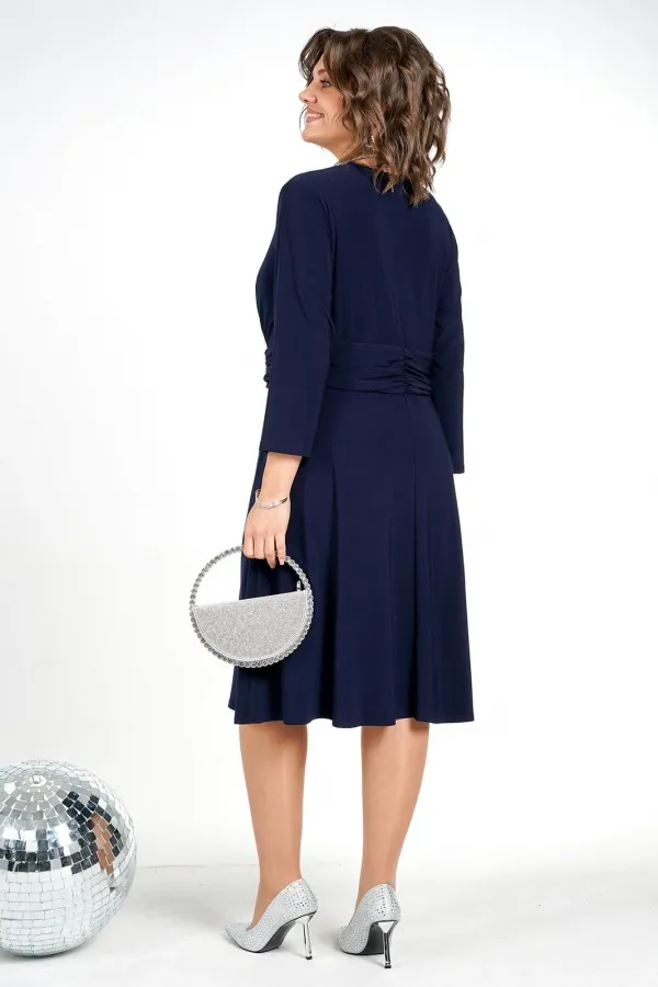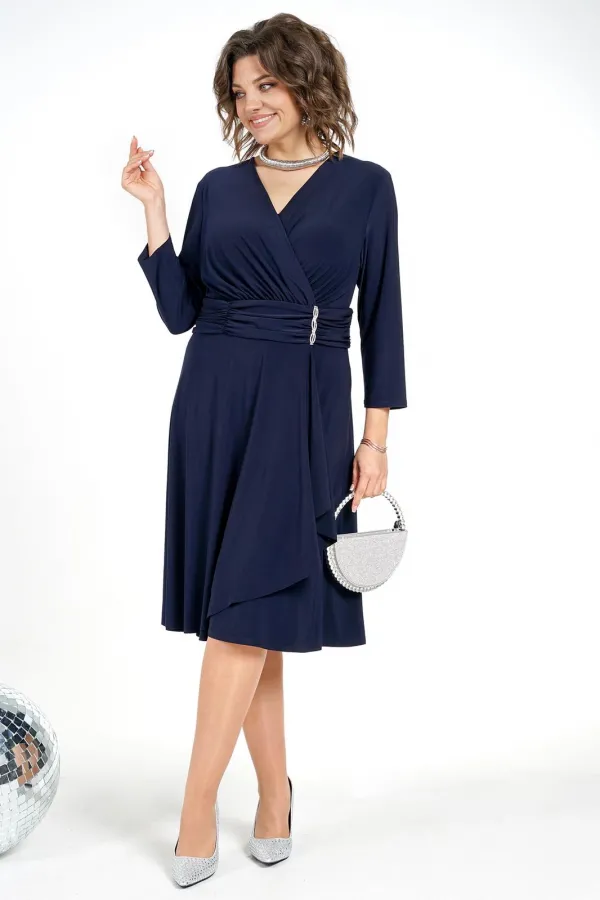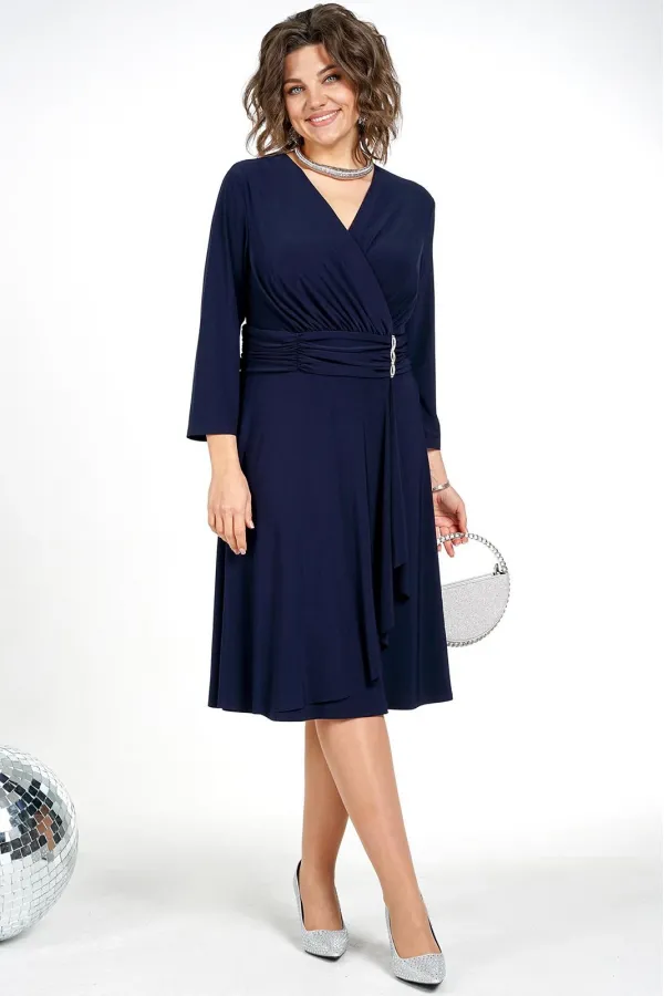 Платье полуприлегающего верху силуэта с расширением книзу, отрезное по линии талии, с притачным задрапированным поясом, по переду декорированный пришивным украшением. Лиф на подкладке. Перед лифа на запах по линии тали... Читать далее...