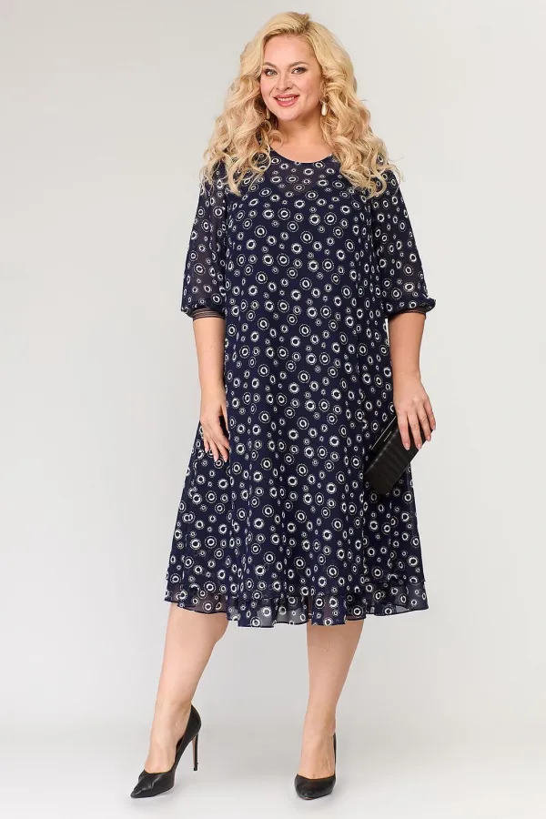 Эффектное платье из шифоновой ткани. Горловина овальной формы, нагрудные вытачки направлены от бокового шва к центру груди, спинка со средним швом и каплевидной застежкой на пуговице. Низ платья обрамляет волан, наполняя образ воздушной многослойностью. Рукав втачной, одношовный, низ рукава собран на эластичную декоративную тесьму. Платье на трикотажной подкладке. Нарядное платье, в котором Вы будете выглядеть женственно и романтично. Платье скроет все неровности фигуры! К платью прилагается съемный пояс. Платье выручит при выходе по любому случаю.