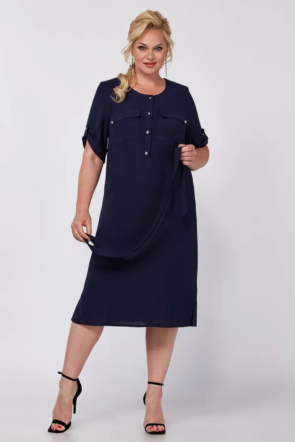 Платье с застежкой на петли и пуговицы - это классика. На первый взгляд - простое, но, как говорится, в простоте - красота. Нарядно-повседневное короткое платье, длиной чуть ниже колена- выгодно подчёркивает фигуру. На полочке обработаны клапаны. По боковым швам есть разрезы. В комплект входит съёмный пояс. Рукава длиной чуть ниже локтя, декорированы патой. Платье подходит для весны, лета, осени. Оно актуально как для взрослых женщин, так и для девушек.