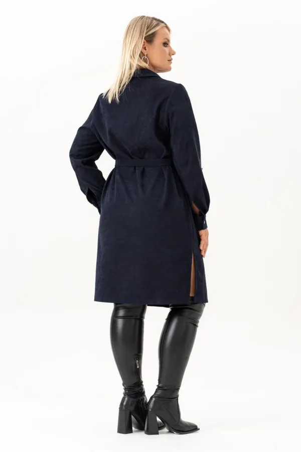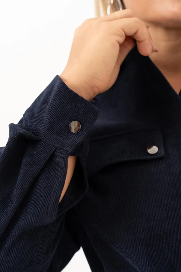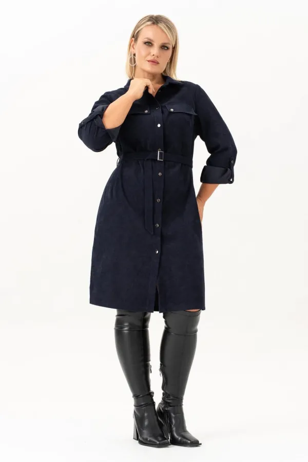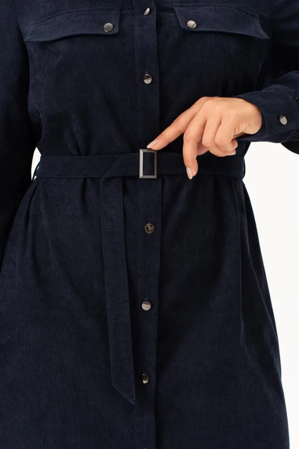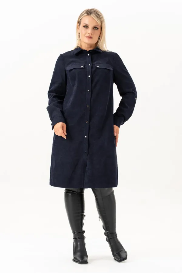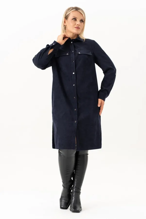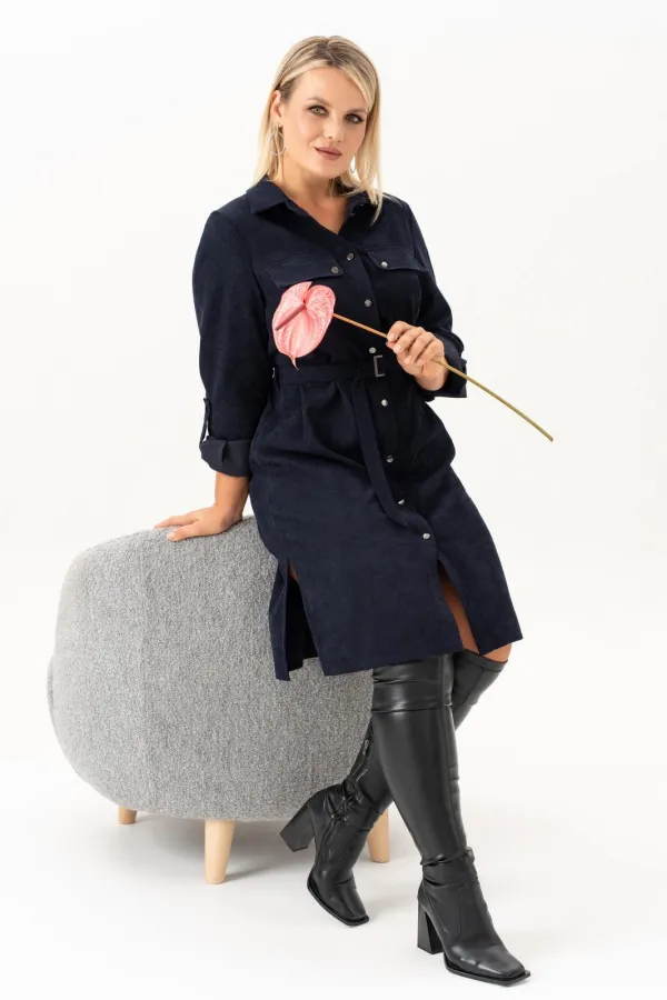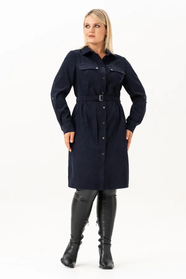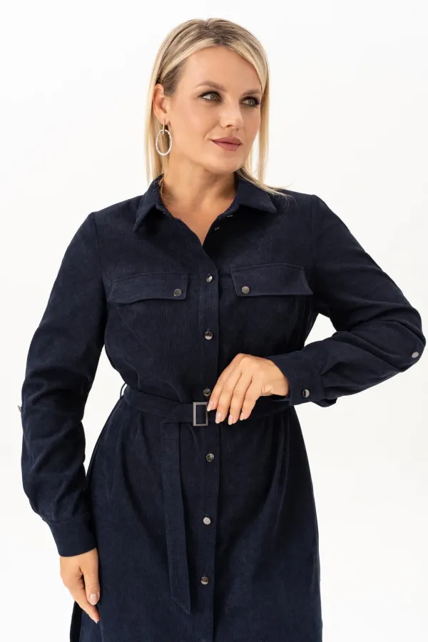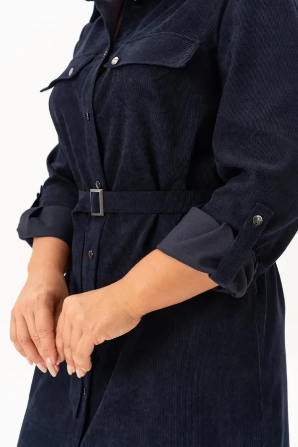 Повседневное женское платье рубашка из вельвета -это сочетание стиля, строгости и утончённости. Спинка со средним швом и разрезами по низу. Универсальное и практичное платье длиной ниже колена, которая будет уместна для любого случая. По переду платья есть нагрудные выточки от пройм и настроченный клапан, который украшен декоративными пуговицами.Также есть карманы в боковых швах. Рукав втачной, длинный, по низу с манжетой и патами. В дополнении к платью идёт пояс . Застёжка спереди на петли и пуговицы на цельнокроеных планках и стояче -отложным воротником на отрезной стойке. Этот вариант вельветового осеннего платья идеален для женщин любого возраста и подходит для любого повода: как деловое на работу, в офис, как нарядное. Женское платье рубашка из штрукса - это отличная базовая модель, которая должна быть в гардеробе каждой девушки.