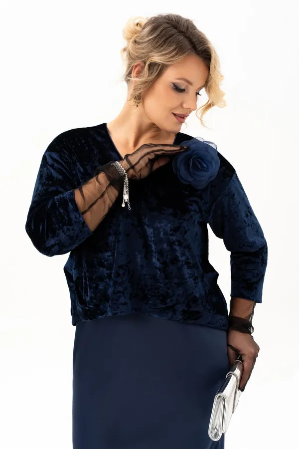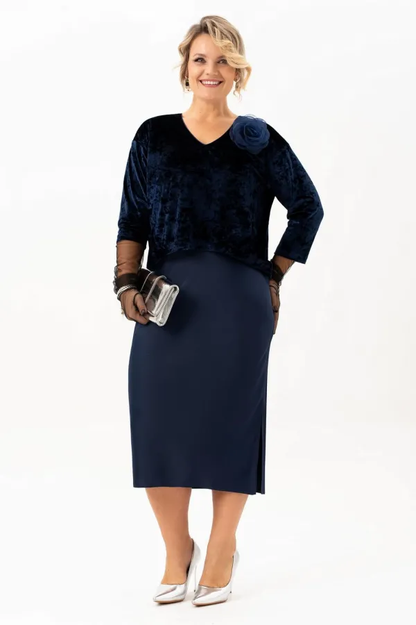 Окунитесь в мир роскоши и элегантности с бархатным вечерним платьем О-образного силуэта имитации костюма. Эта модель, словно сошедшая со страниц модного журнала , станет идеальным выбором для любого праздничного события. Мягкий бархат струится по фигуре, подчеркивая ее изгибы и создавая неповторимый образ. V-образный вырез горловины придает образу женственность и нежность, а атлас по низу платья добавляет нотку изысканности. Длина миди делает это платье универсальным, подходящим как для торжественных мероприятий, так и для романтических свиданий. Представьте себя в этом платье на новогодней вечеринке, на свадьбе лучшей подруги или на любом другом празднике – вы будете неотразимы! Кант по горловине изделия , съемный бант и удлиненные перчатки из эластичной сетки добавляют изюминку, делая образ еще более привлекательным. Платье на трикотажной подкладке выполнено из ткани которая обеспечивает комфорт и свободу движений на протяжении всего вечера. Благодаря отрезному под грудью силуэту, модель идеально садится на фигуру, подчеркивая все ее достоинства.