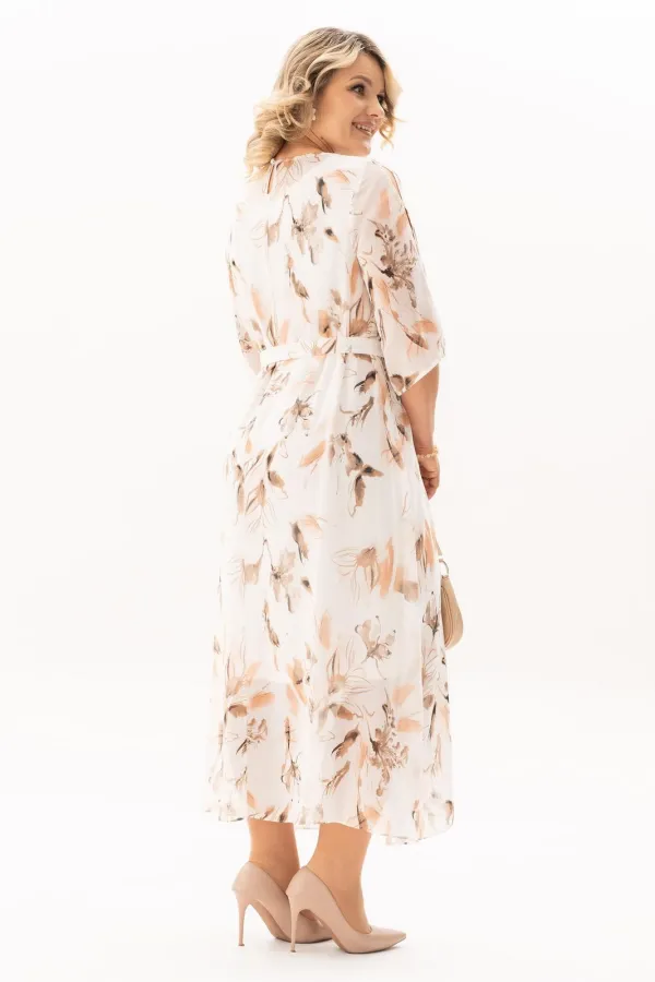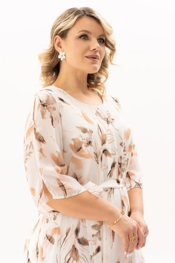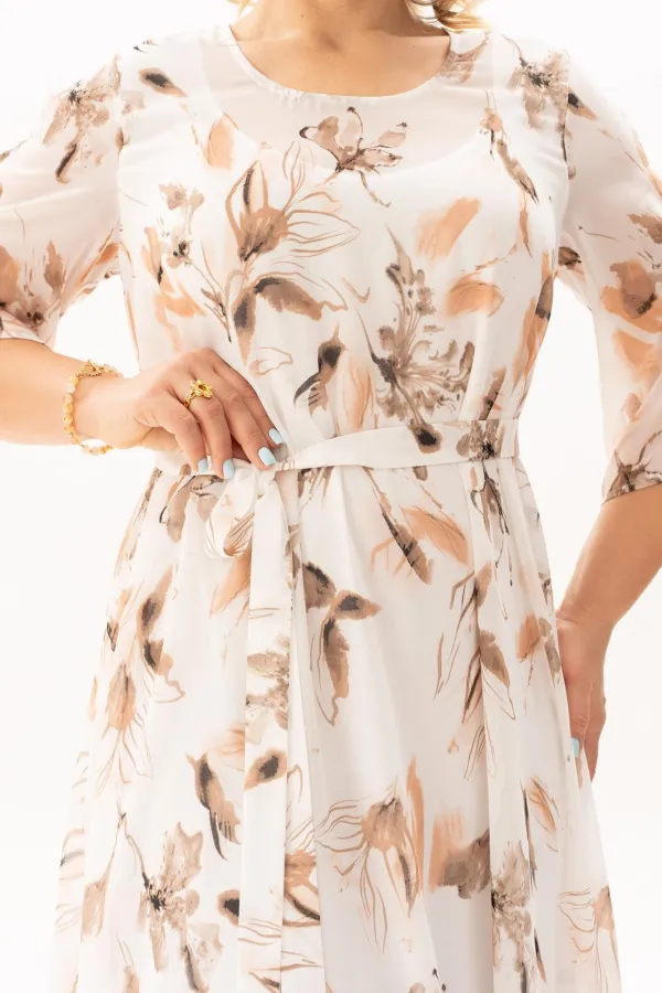 Стильное, модное, шикарное женское платье из нежного воздушного шифона - идеальный выбор для праздничного мероприятия, юбилея или любого торжества! Элегантное и эффектное дизайнерское платье подчеркнет Вашу природную женственность, сексуальность и красоту. Платье свободного кроя на трикотажной подкладке -будет также комфортно и в повседневной жизни. На платье обработаны разрезы в боковых швах, спинка со средним швом и каплевидной застежкой на пуговице. Рукав длиной чуть ниже локтя. Платье дополнено поясом, благодаря которому , Вы сможете подчеркнуть свою талию и создать более стройный силуэт. А длина макси позволит Вам чувствовать себя комфортно в любой ситуации.