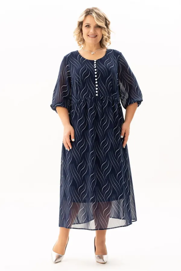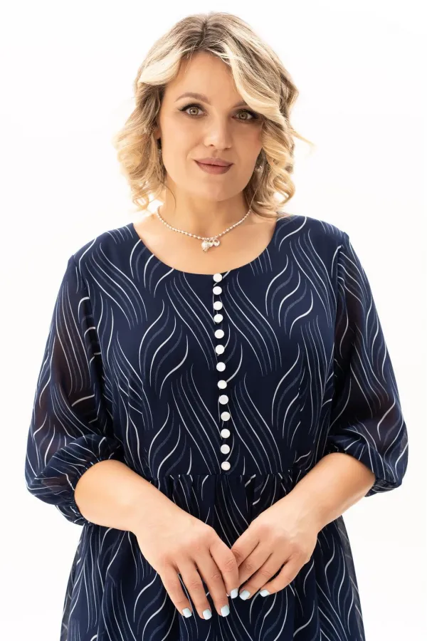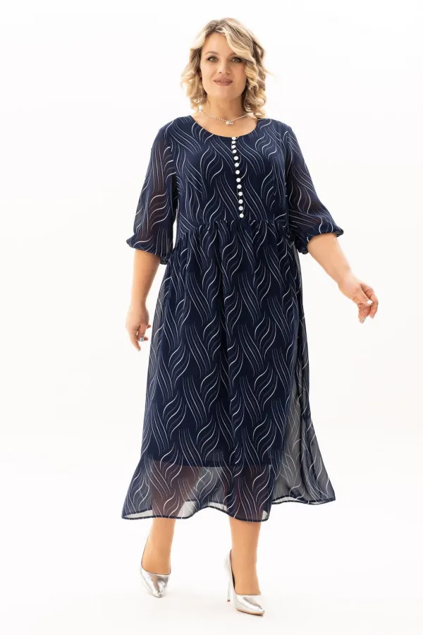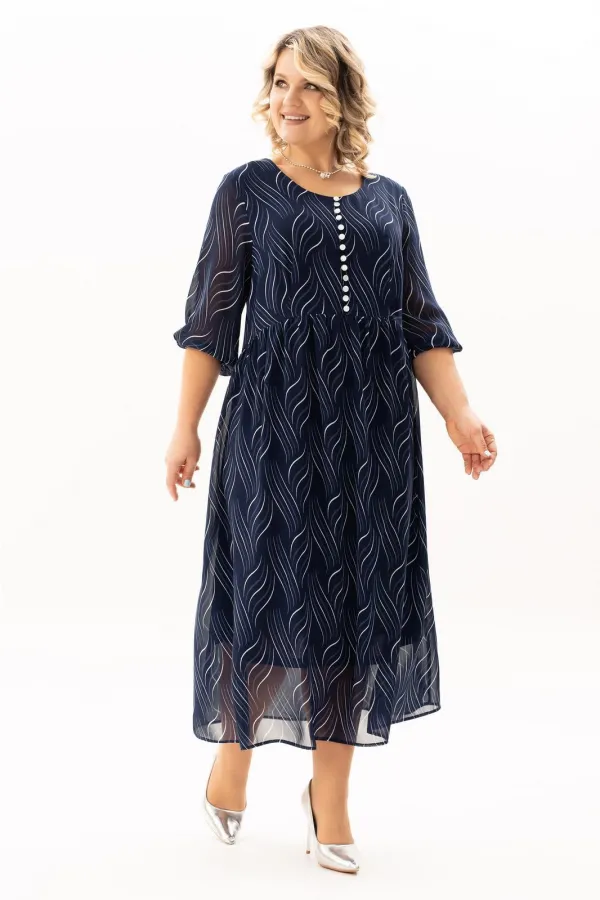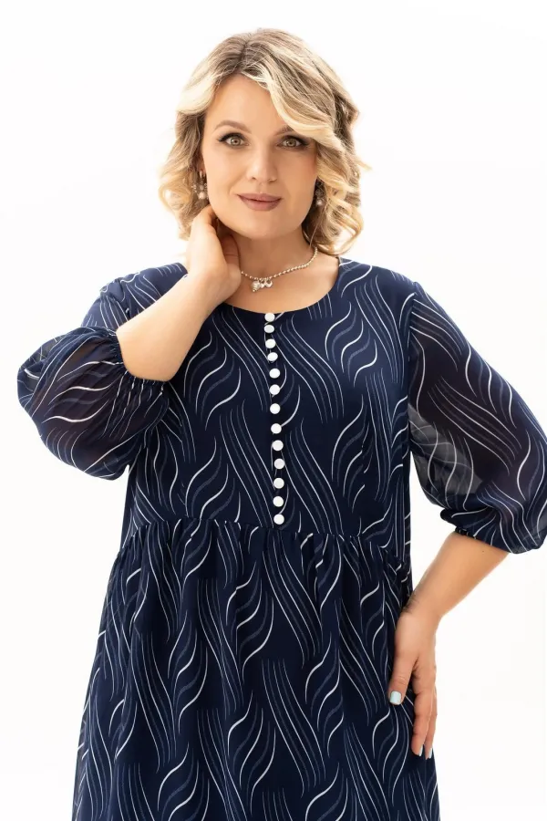 Нежное платье из шифона, прекрасно сидит на любой фигуре и придает образу легкость и женственность. Простые линии придают женскому облику изысканность и лаконичность. Перед платья с отрезным лифом и нижней частью, спинка со средним швом. Приятные эмоции вызывает ряд декоративных пуговиц по среднему шву лифа и небольшие полупрозрачные рукавчики. Аккуратная сборка по шву притачивания нижней части удачно раскрывает всю прелесть этой трепетной ткани. Такое платье достойно стать базовым элементом дамского гардероба. Наряд можно носить и в офис, и на прогулку, и в ресторан, а благодаря А-образному силуэту платья оно подойдет и хорошо сядет на любую фигуру. Платье выполнено из шифона на трикотажной подкладке. Горловина круглая. Длина платья универсальная, поэтому его могут носить девушки и дамы любого возраста. Такое платье призвано подчеркнуть природную женскую красоту и грацию, а также безупречный вкус его обладательницы. Универсальность в сочетании с невесомостью и текстурой материала делают эту модель востребованной в любых случаях. Платье подойдет налюбой случай !