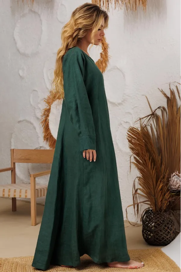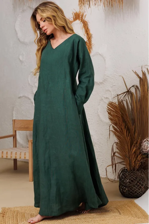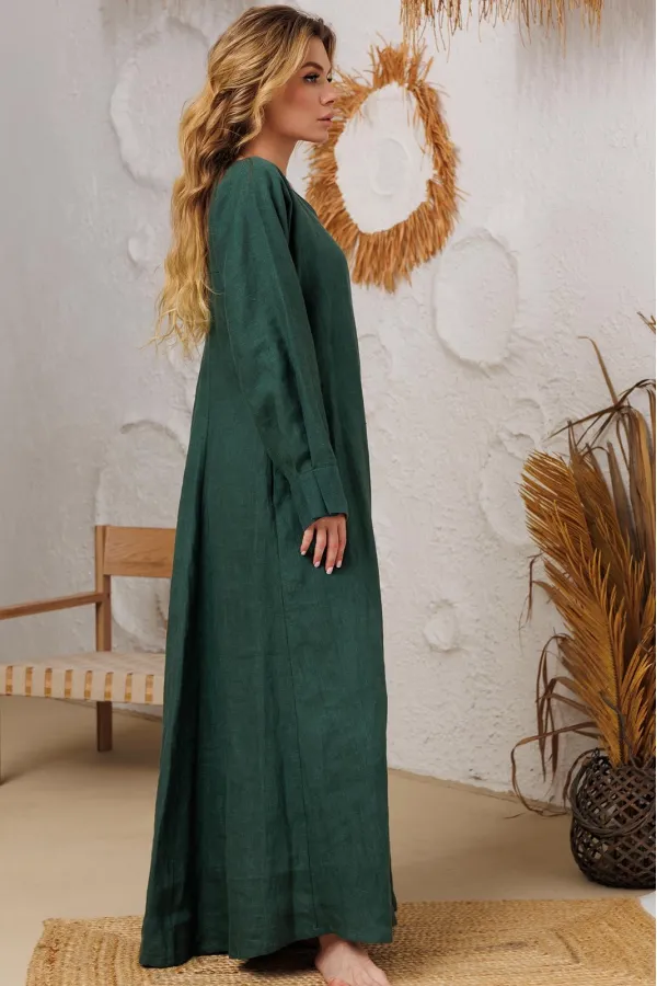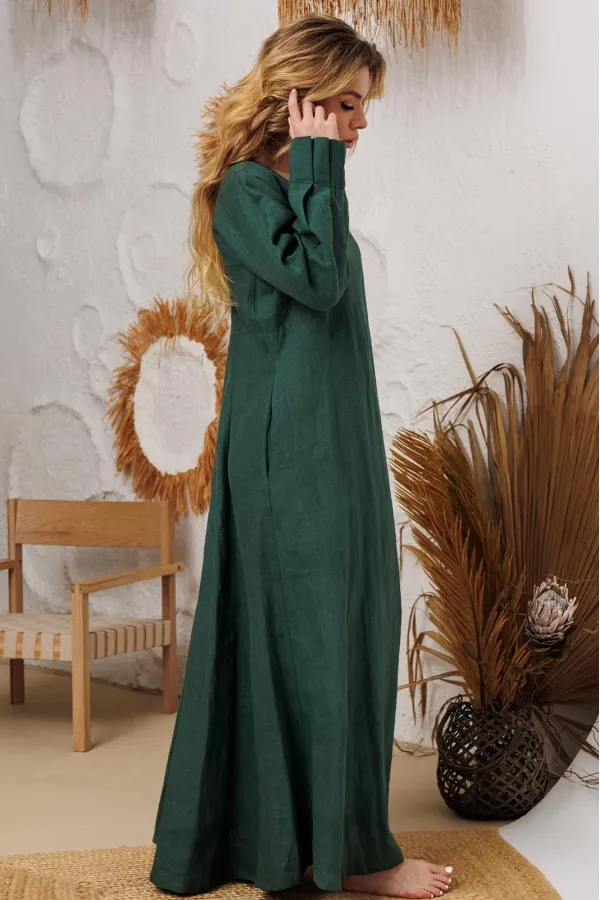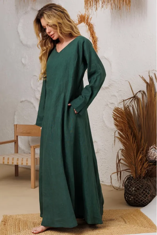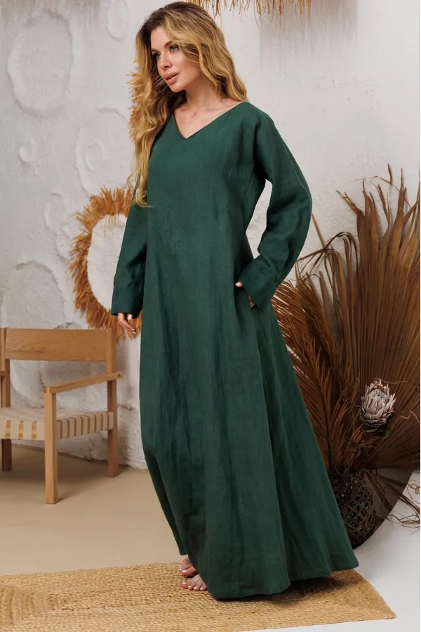 Натуральное льняное шикарное платье со смыслом. Свободный, широкий низ платья позволяет свободно проявляться в социуме. Очень красивый манжет со складочками. И конечно, карманы- это символ комфорта и удобства. На груди идёт очень глубокая обтачка уголком к талии, что создает эффект стройности и дополнительно защищает грудь и позволяет ходить без нижнего белья. Наши платья очень красиво смотрятся и летом и зимой под грубые ботинки и различные дутые куртки и пальто. Каждое платье бренда А М У Л Е Т создано с применением древних славянских принципов по изготовлению обережной одежды. Обращаю Ваше внимание на то, что к заказу надо подходить осознанно, с пониманием ценности, а возвраты или неоплата, не в вашу копилку Благочестия, как говорится ). Мы Вас Любим и в комплекте к платью прилагаем сумку-шопер с логотипом бренда. Это Платье для Радости и Благости! Наслаждайтесь!В подарок идет шопер с логотипом бренда.