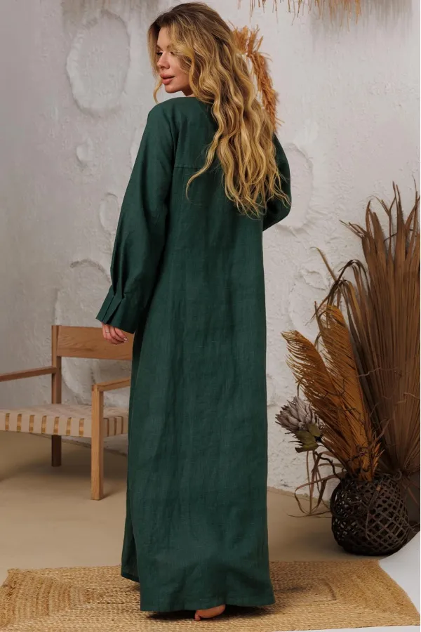 Натуральное льняное шикарное платье со смыслом. Свободный, широкий низ платья позволяет свободно проявляться в социуме. Очень красивый манжет со складочками. И конечно, карманы- это символ комфорта и удобства. На груди ... Читать далее...