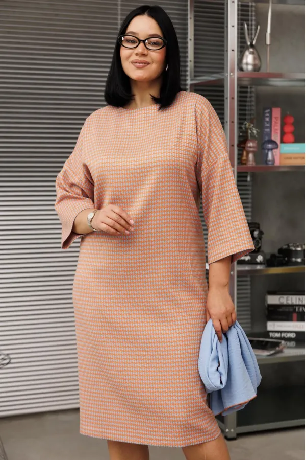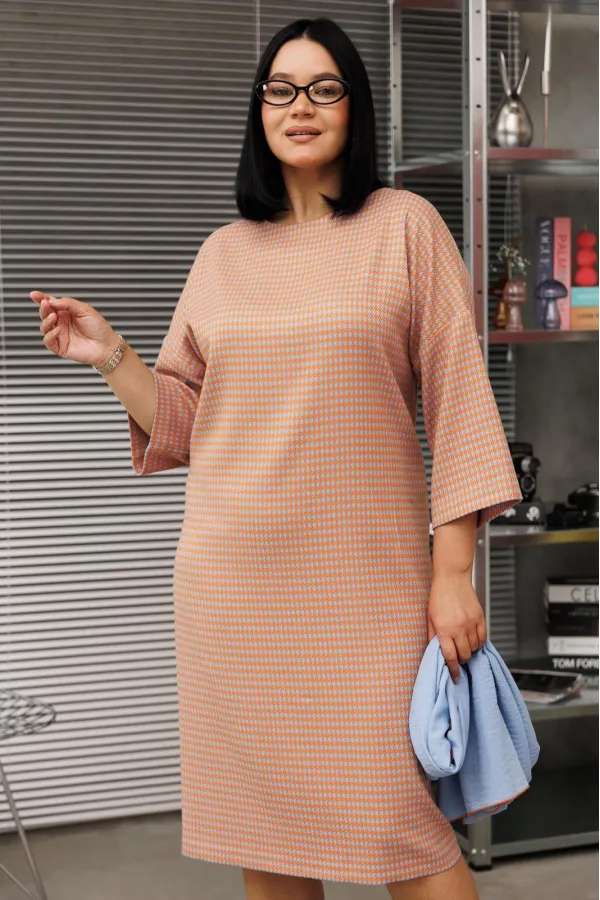 Элегантное платье женское из текстильной ткани гусиная лапка- современная классика от бренда Anastasia. В комплкете с палтьем идет однотонный палантин, благодаря кототорому можно создавать разные образы. Платье прямого силуэта длиной за колено. Благодаря своему крою идевльно сядет на любой тип фигуры. Перед цельный. Спинка со средним швом, застёжка на потайную молнию, по низу - разрез, горловина овальной формы. Рукав со спущенным плечом, 3/4 длины.В этом платье вы будете центром внимания в любой компании. Идеальное яркое платье со стильным принтом для романтичных женщин. Благодаря женственному силуэту вы будете всегда ощущать себя красивой и модной. Каждое наше изделие выполнено на нашем производстве, мы тщательно подходим к отбору наших тканей, фурнитуры и выбираем для Вас только самое лучшее. Качественный крой, идеальная посадка и материалы обеспечат комфорт в течение всего дня. Данная модель прекрасная покупка для весенне-летнего сезона. Длина платья: (48-52)-98 см., (54-56)-102 см. Длина рукава: (48-56)-28 см.