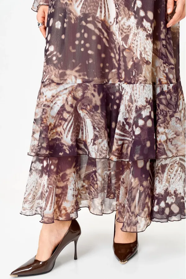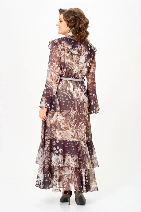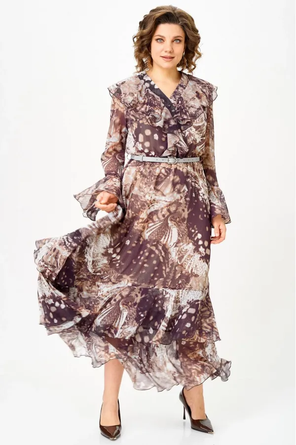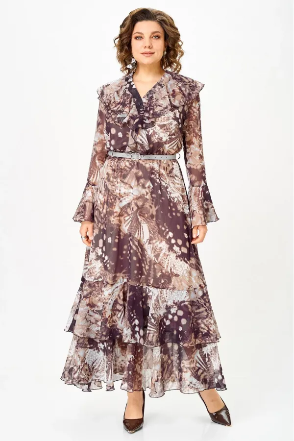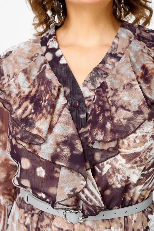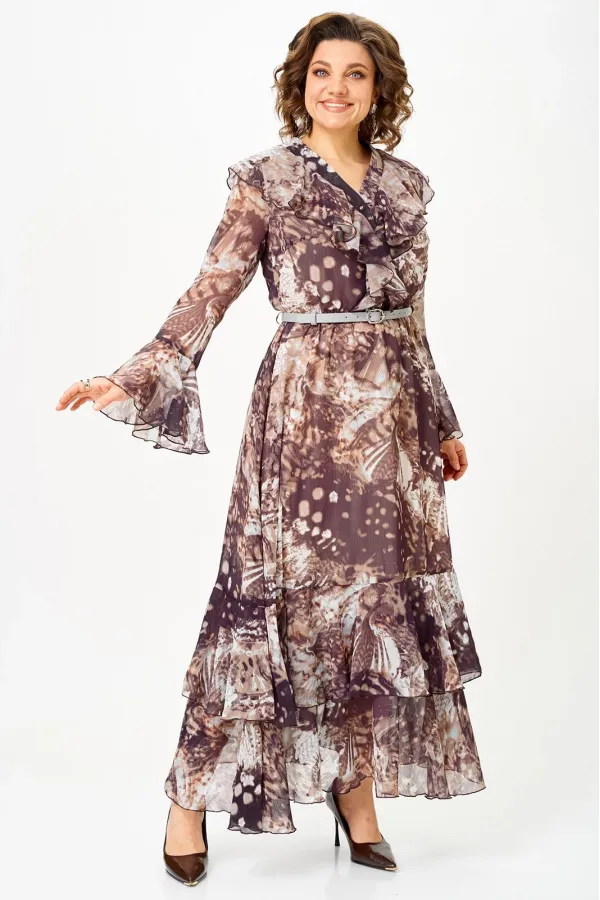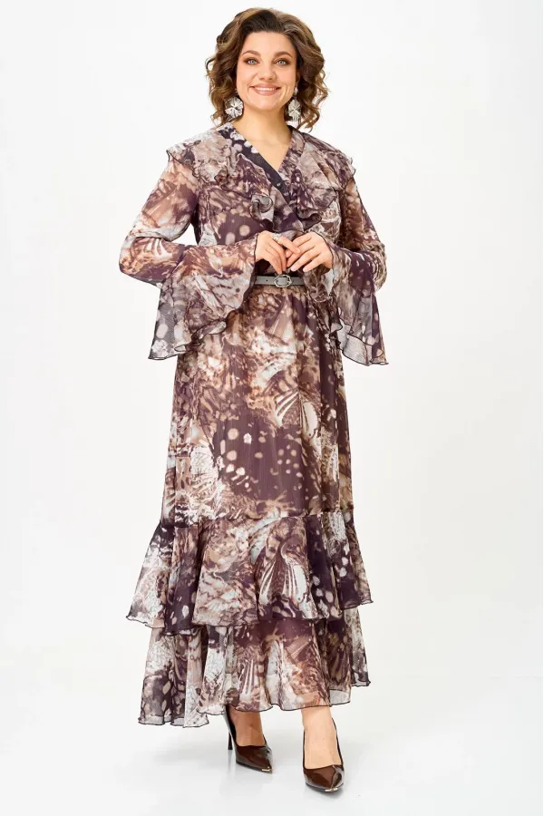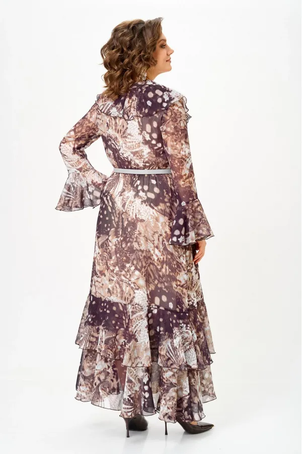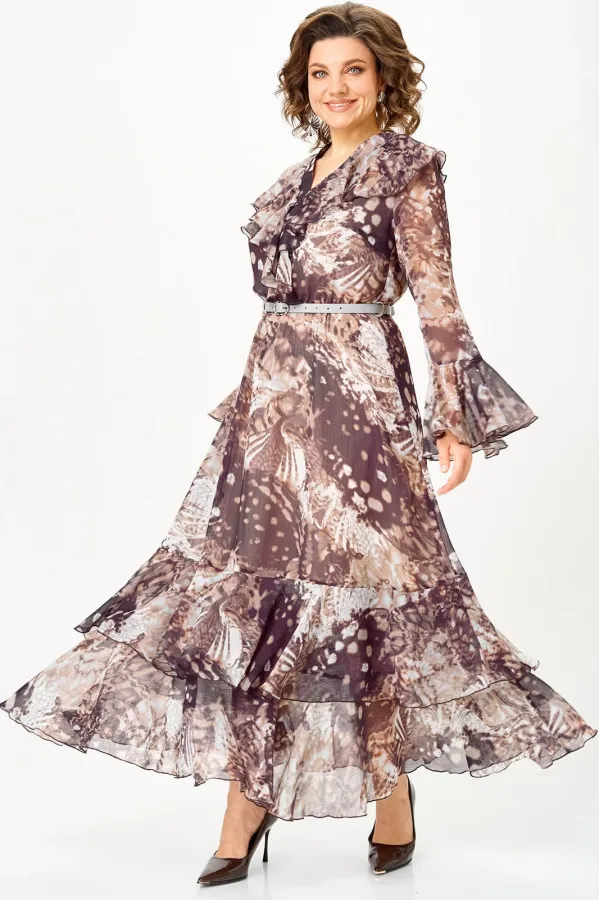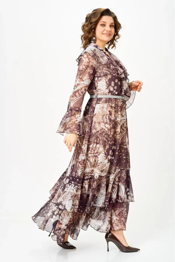 Платье длиной макси, свободного силуэта. Платье выполнено из шифона с набивным рисунком, лиф и юбка платья на подкладке. Платье отрезное по линии талии. Полочка лифа с нагрудными вытачками и центральной планкой с застежк... Читать далее...
