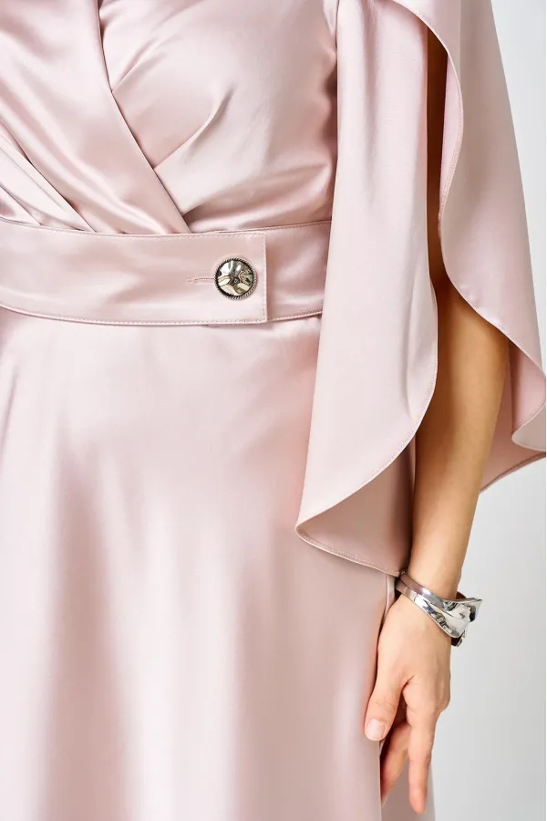 Платье длиной макси, с полуприлегающим лифом и юбкой А-образной формы, выполнено из однотонной ткани костюмно-плательной группы .