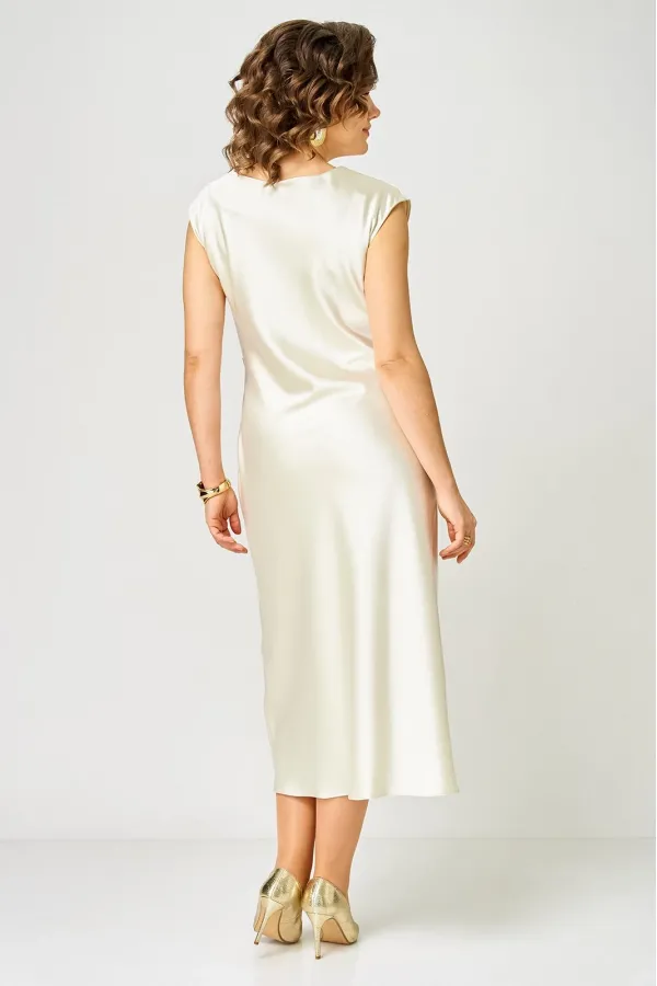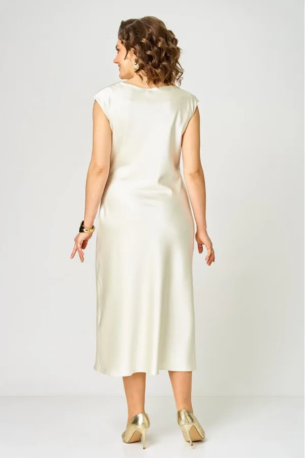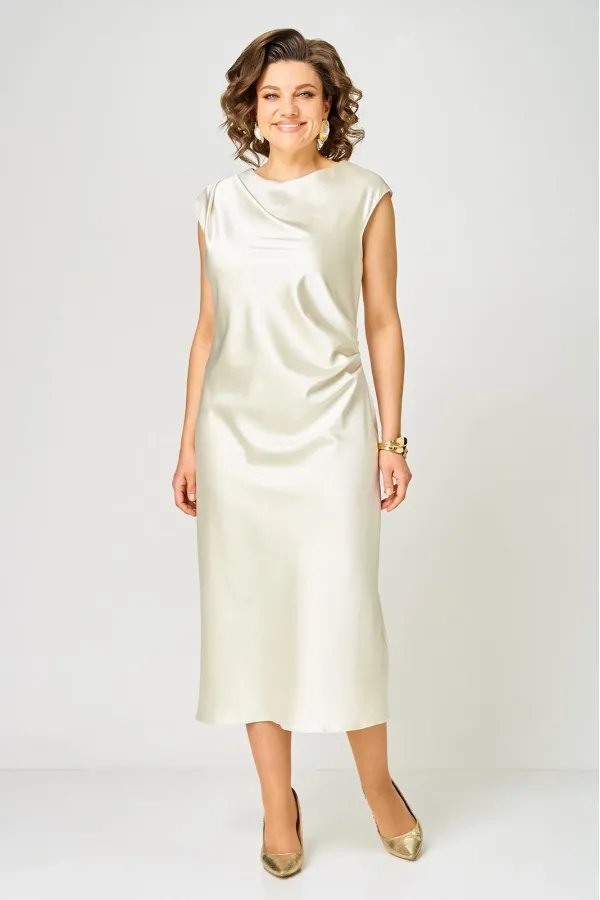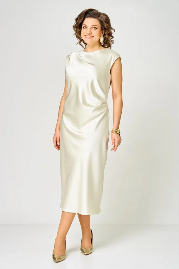 Элегантное и стильное платье от бренда Anastasia Mak идеальный выбор для современной женщины, которая ценит комфорт и стиль. Платье прекрасно подойдет на каждый день, для праздника или вечеринки. Платье полуприлегающего силуэта, длиной за колено, выполнено из однотонной ткани с эффектом атласа. Полочка платья с ассиметричной драпировкой, с правой стороны полочки складки выполнены в области плеча, с левой стороны в боковом шве. Горловина овальной формы. Спинка цельная. Крой платья выполнен по косой, платье без молнии.Параметры изделия представлены на фото.