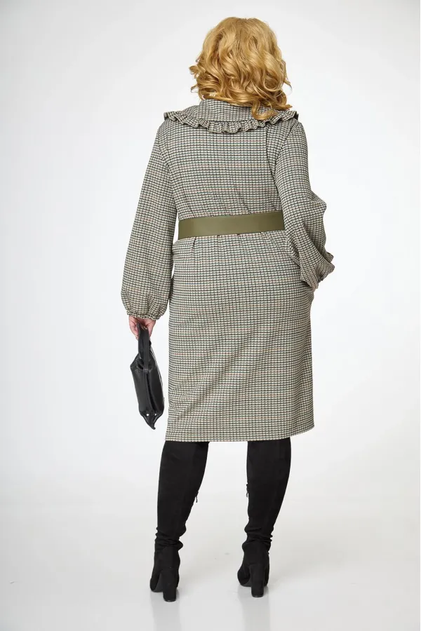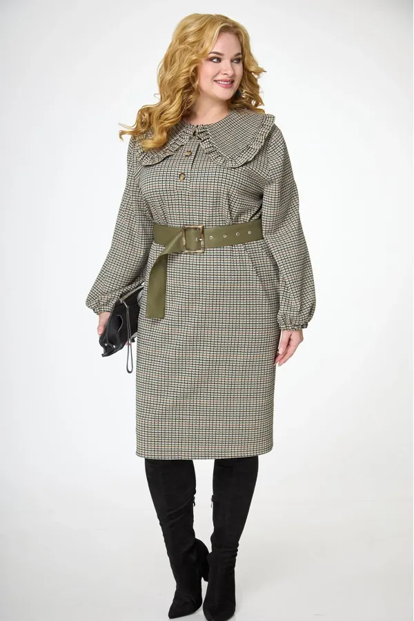 Актуальный в наступившем сезоне, свободный силуэт платья с увеличенным воротником создаёт романтичный образ, который уместен для любого выхода.