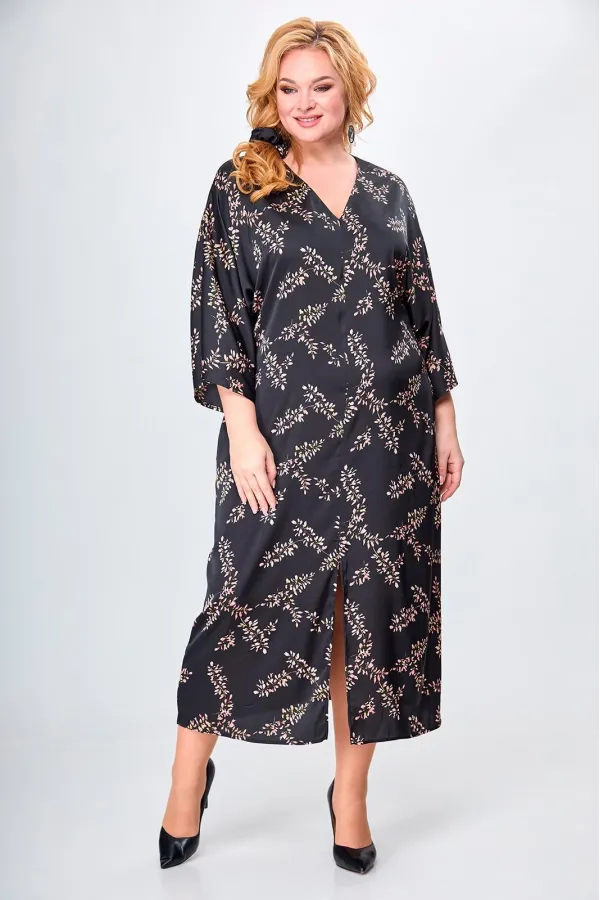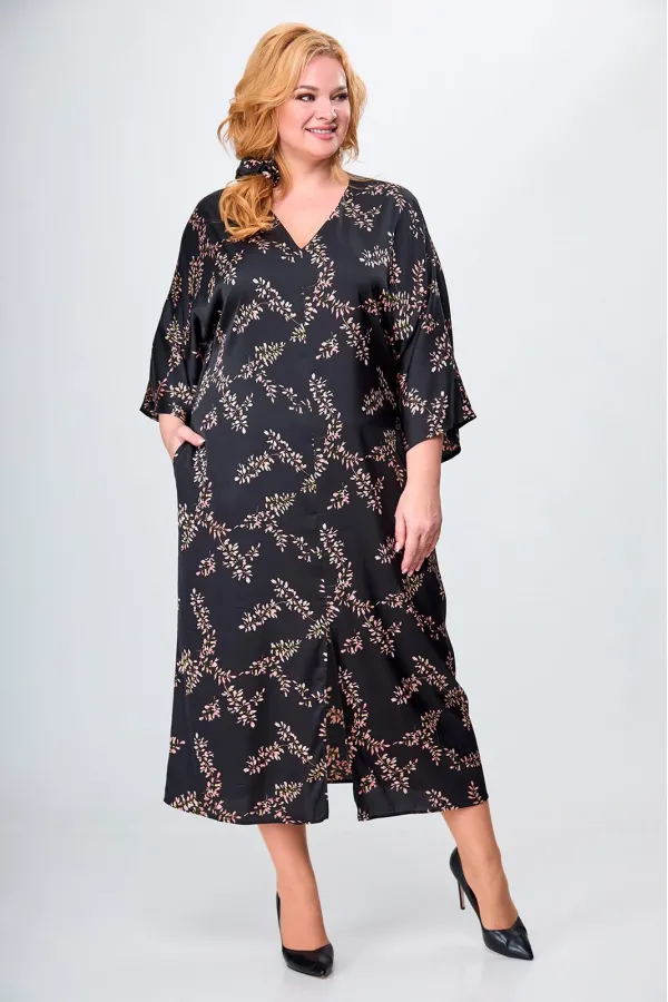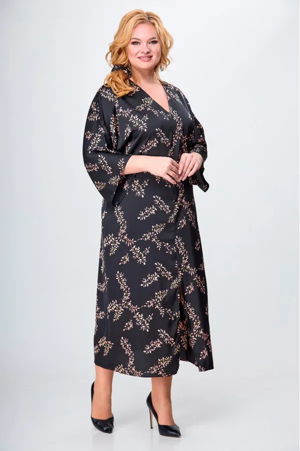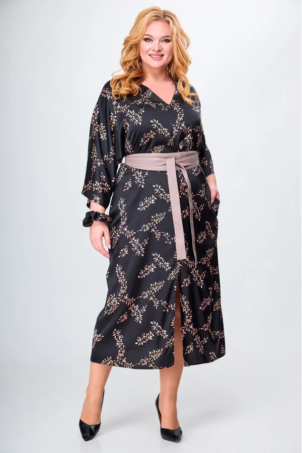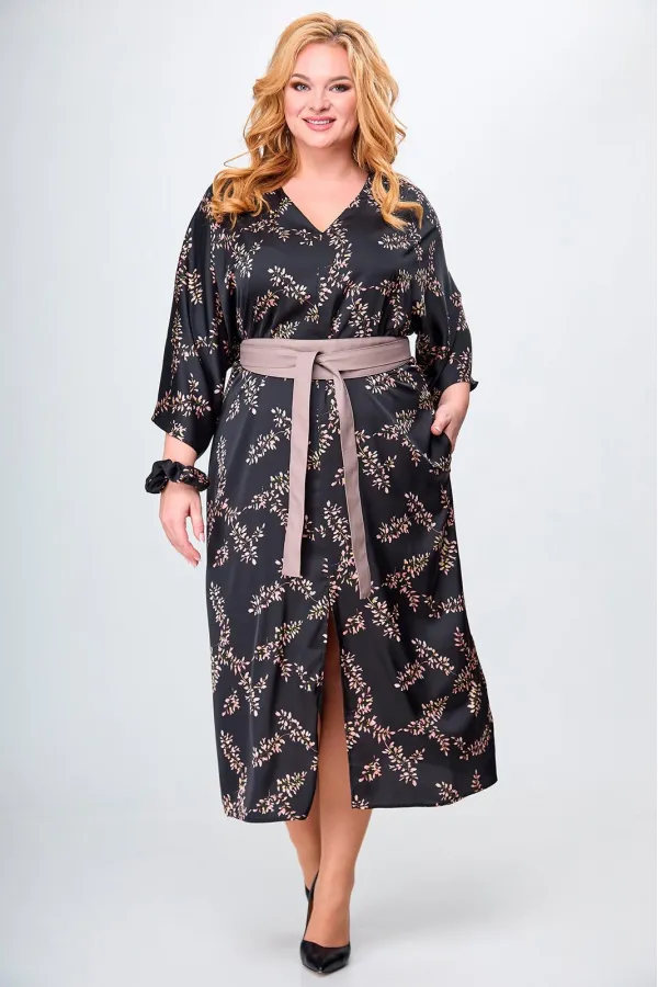 Элегантое платье из шелковой принтованной ткани. Прямой силуэт, цельнокроеные рукава,V-образный вырез горловины, перед со средним швом, в котором расположен разрез. Дополнено съёмным кожаным ремнём. Невероятно женственно... Читать далее...