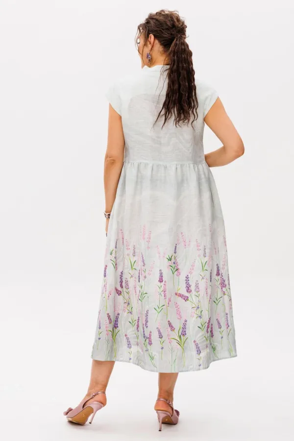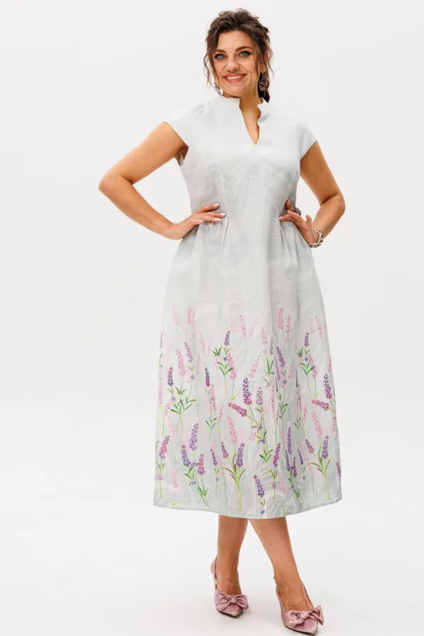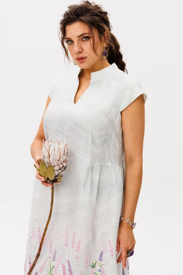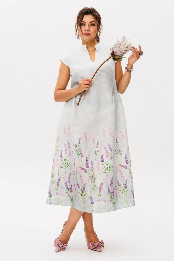 Это платье из благородного беларусского льна в цвете лавандовый аромат - истинная поэзия женственности, воплощенная в ткани.