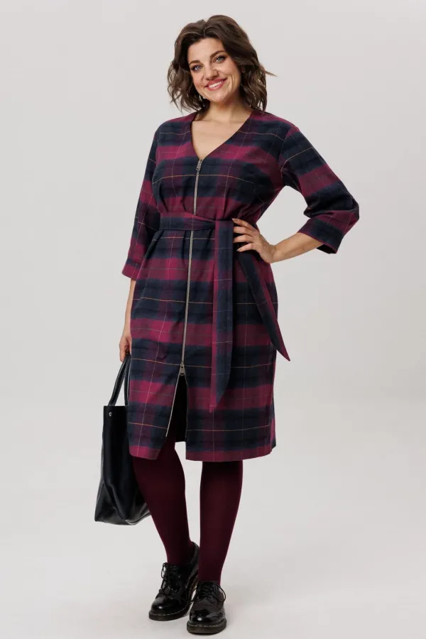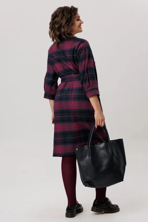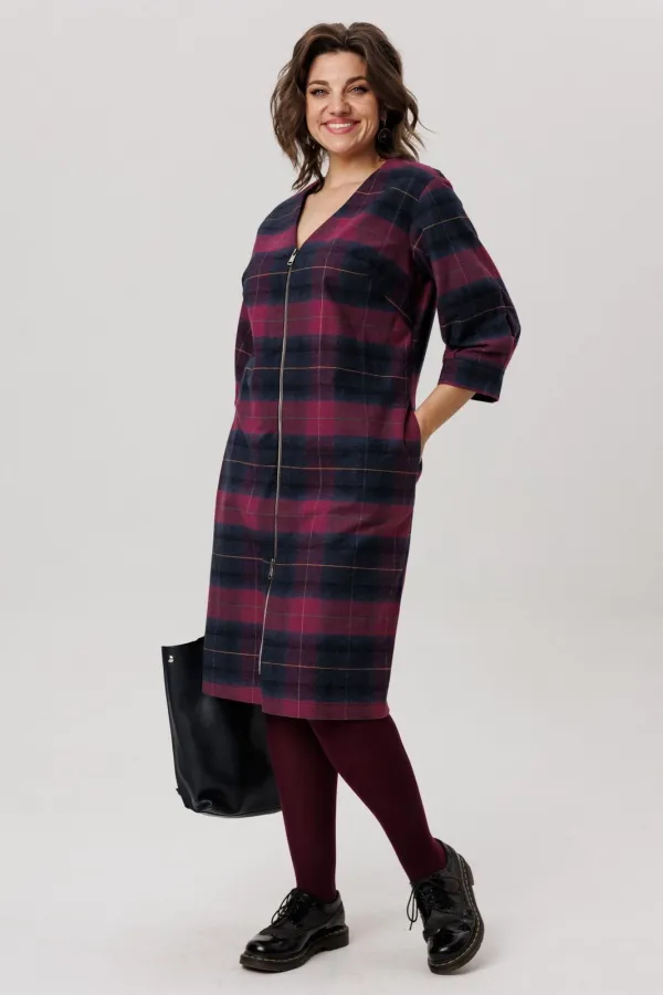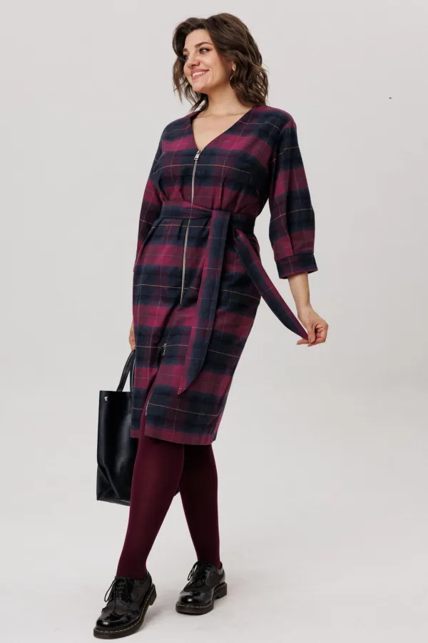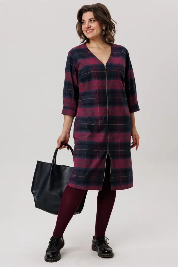 Фланелевое платье полуприлегающего силуэта в винном оттенке — это выбор настоящих модниц.