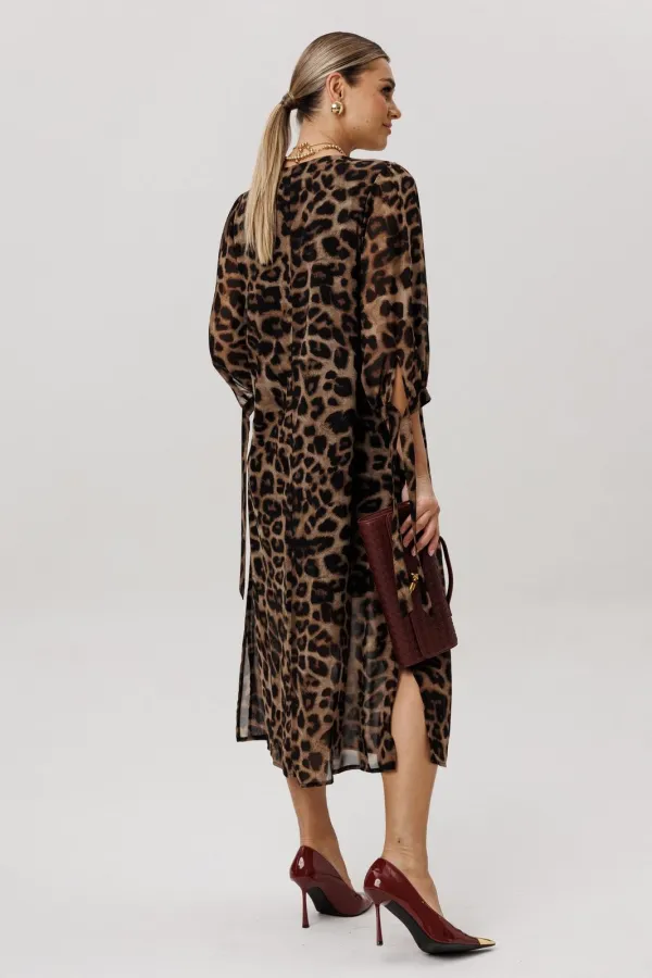 Нежная текстура материала в сочетании с дерзким принтом создаёт ощущение лёгкости, воздушности и одновременно страсти, что делает его незаменимым для особых случаев.