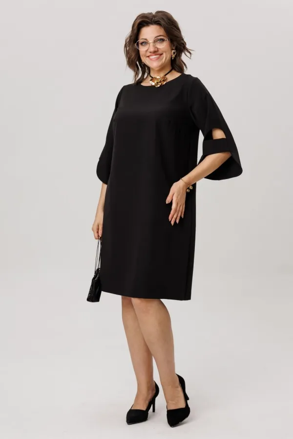 Платье от Анелли, воплотившее в себе торжественную элегантность, построено на безупречном крое и продуманных деталях. Его силуэт-трапеция, ниспадающий до длины, слегка прикрывающей колено, создает современный и уверенный образ.