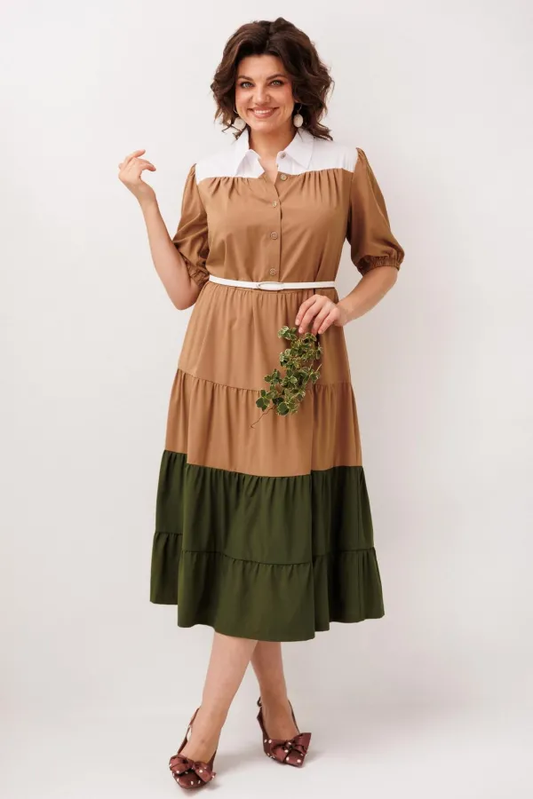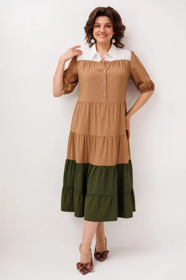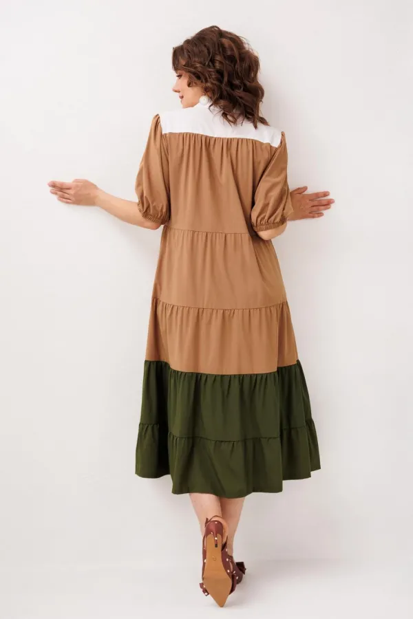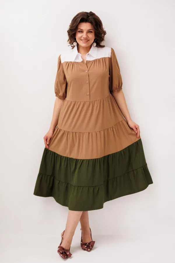 Сочетание трёх гармоничных оттенков раскрывается плавно и красиво, словно переливы домашнего печенья, наполняя платье особым настроением.