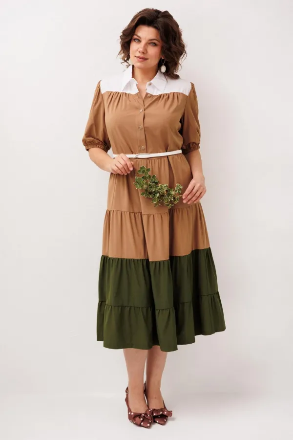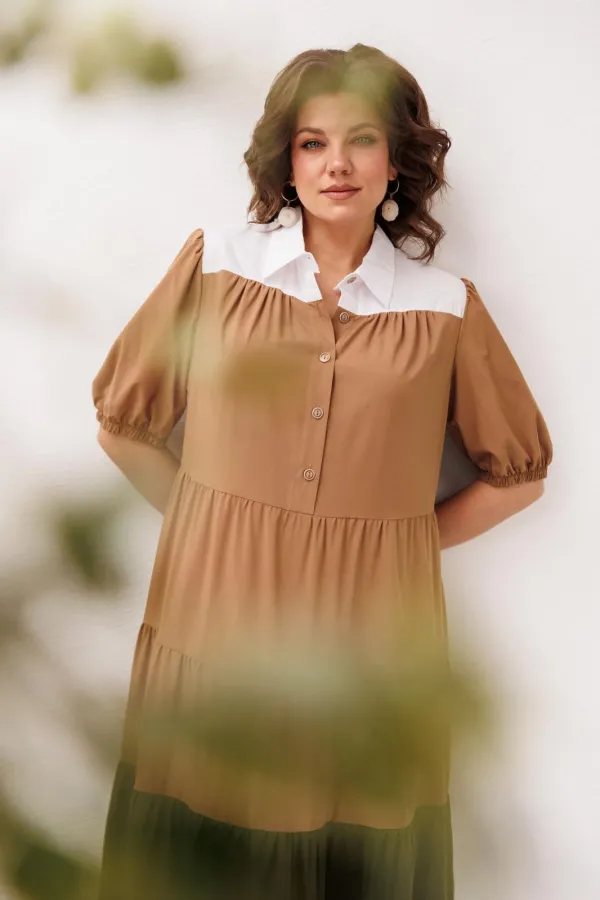 Платье словно вдохновлено оттенками «овсяного печенья» - мягкое, романтичное и притягательное своей глубиной цвета. Рубашечный фасон с отрезной талией формирует женственный силуэт, а длина миди добавляет образу спокойн... Читать далее...