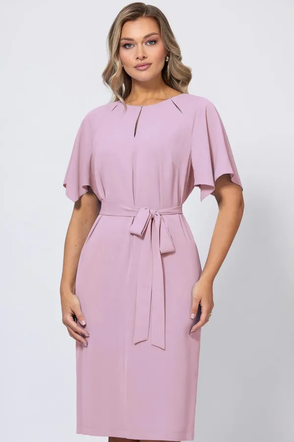 Элегантное платье с красивым декольте с мерцающими кристаллами придётся по душе ценителям нежного и женственного дизайна. А также дополнено интересными рукавами-крылышками, придающими романтичное настроение. В среднем шве спинки обработаны застёжка на навесную петлю-пуговицу и шлица. Модель выполнили из приятной немнущейся ткани, красиво струящейся во время носки. Прямой крой позволяет носить изделие как свободным, так и подчеркнув талию поясом-завязкой. Платье украсит любое событие — от семейного торжества до романтического вечера, а его уникальный дизайн всегда будет выделять его владелицу среди остальных.